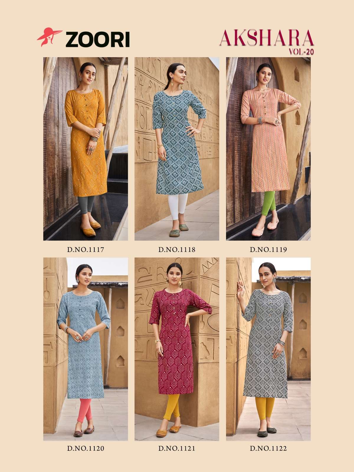 zoori akshara vol 20 rayon printed casual wear kurtis