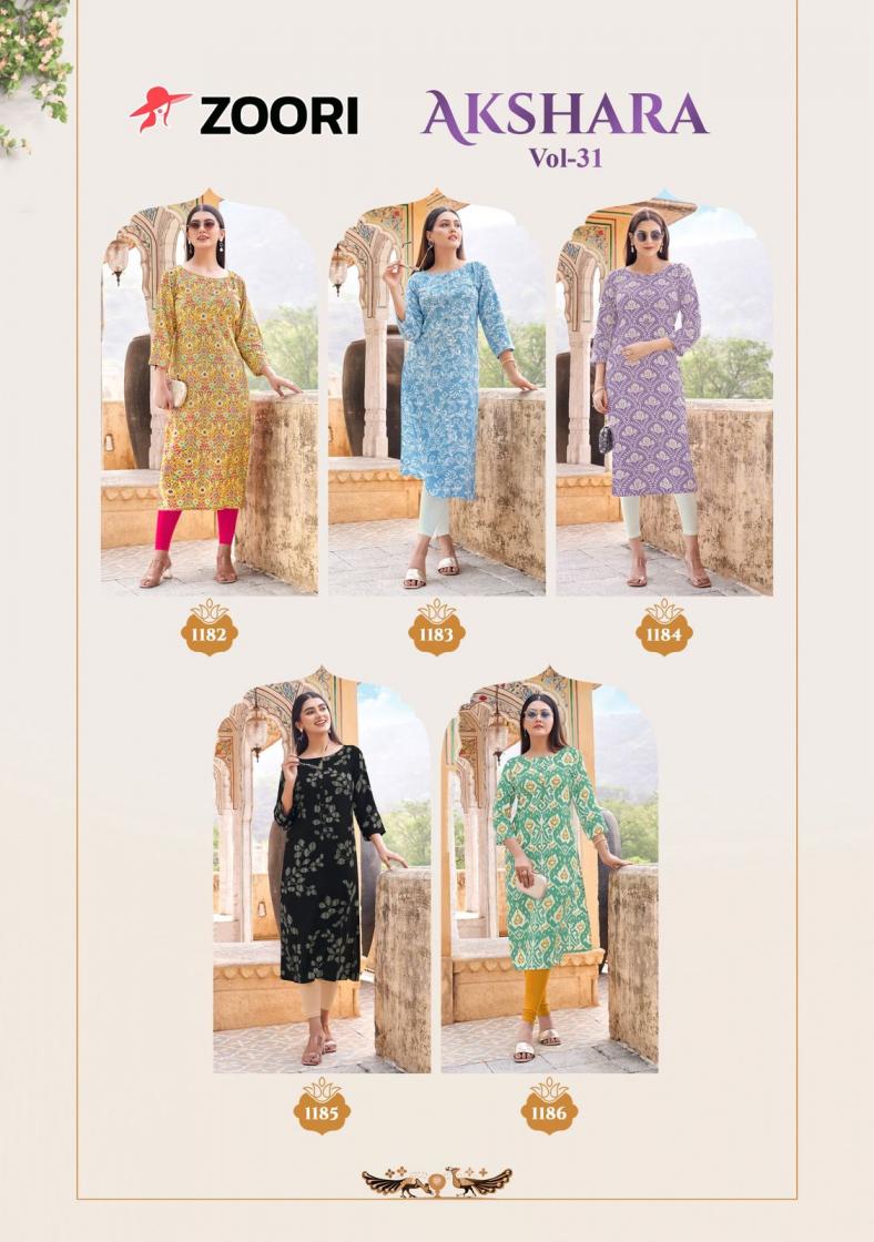 zoori akshara vol 31 rayon readymade pretty look long kurtis