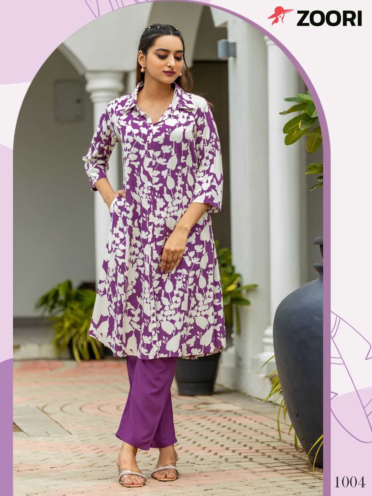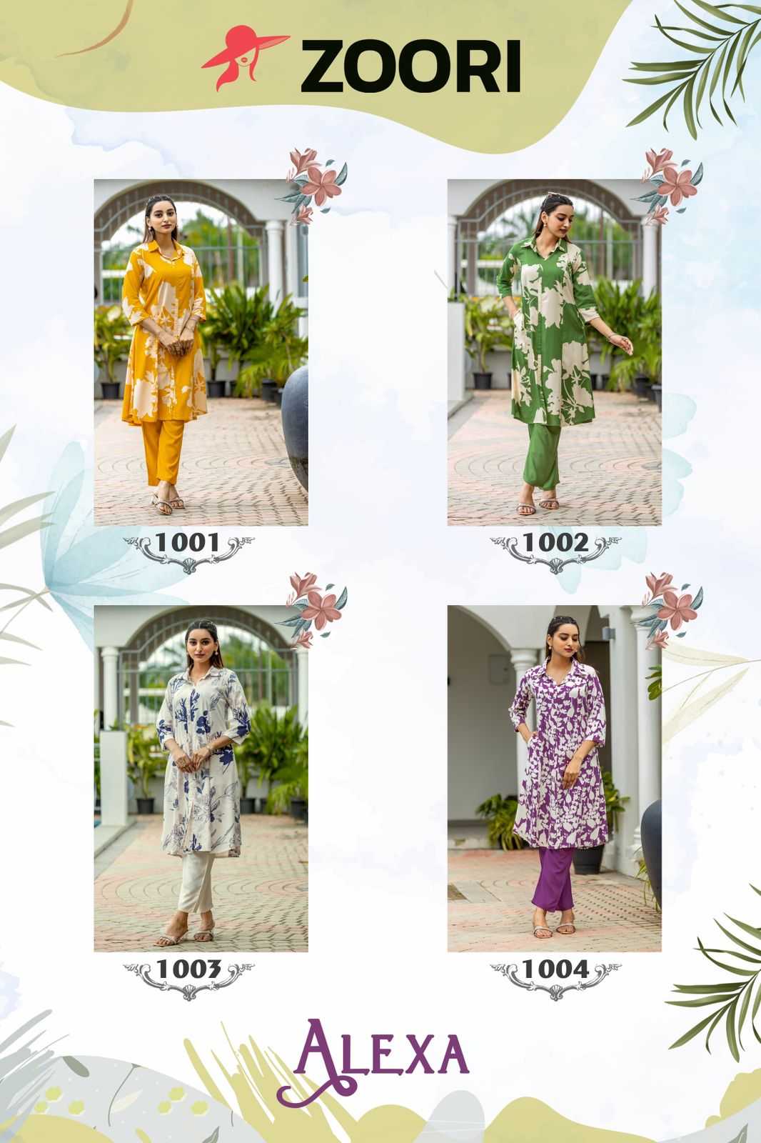 zoori alexa rayon print readymade classic look kurti with pant exports