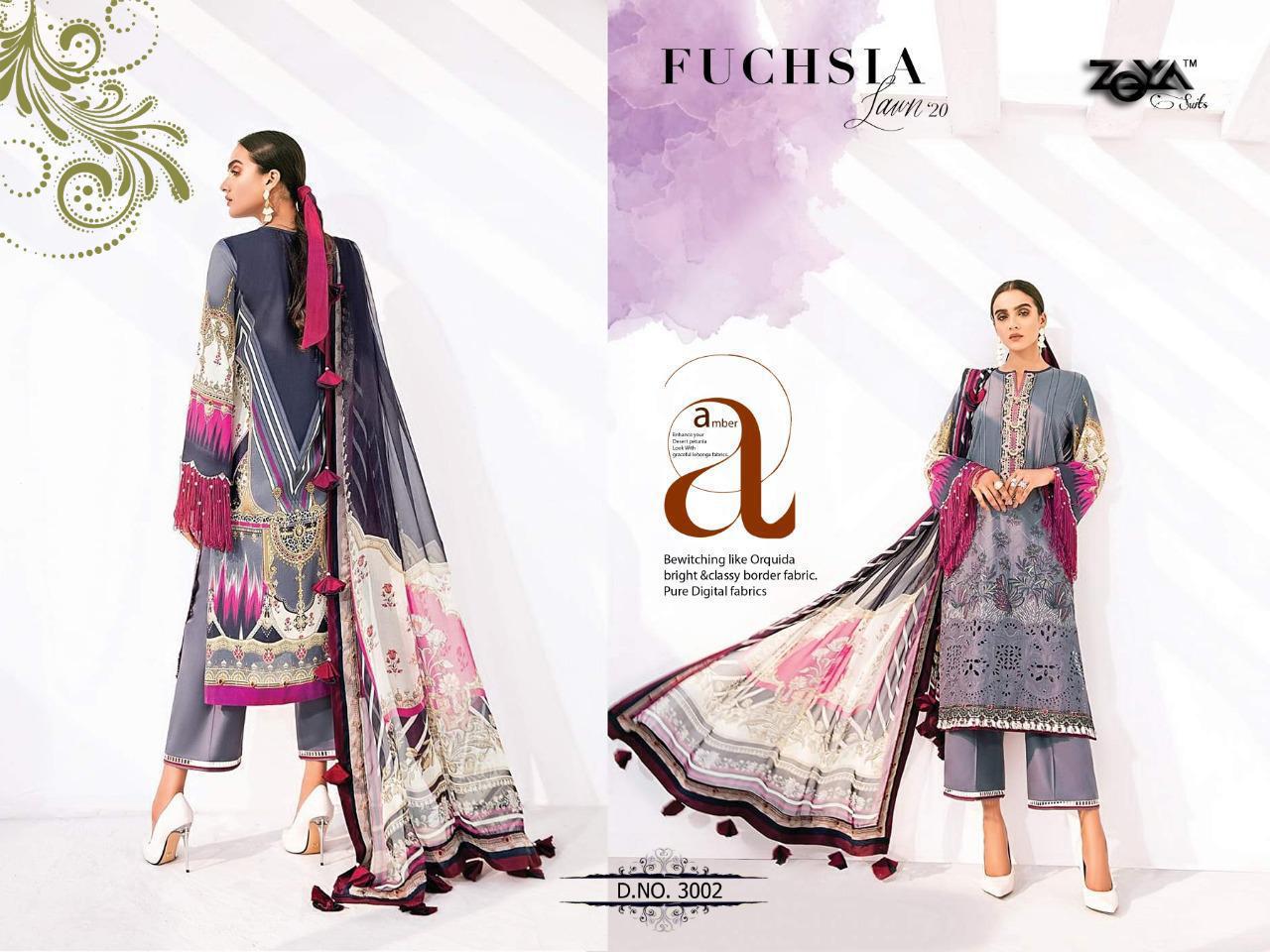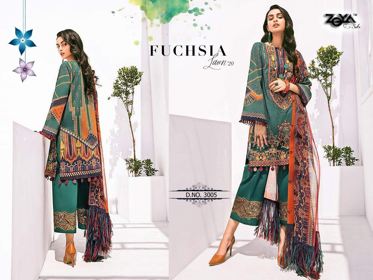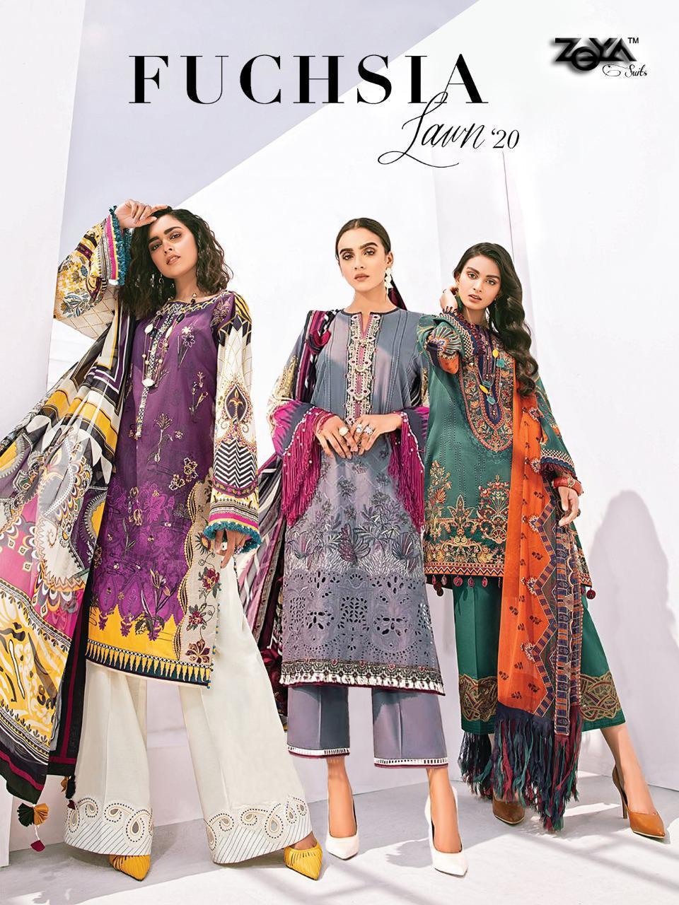 Zoya Fuchsia Lawn 20 Cotton Printed Patch Work Pakistani Suits Wholesaler