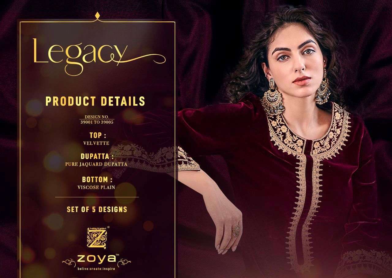 Pleased To Present to You Pictures of our Upcoming winter designer collection on VELVETTE ZOYA....LEGACY PRICE LIST DNo: 39001 to 39005 Set of 5 pcs Average Price Per Pcs INR: 2421/- ( Avrage rate ). PLUS GST |
