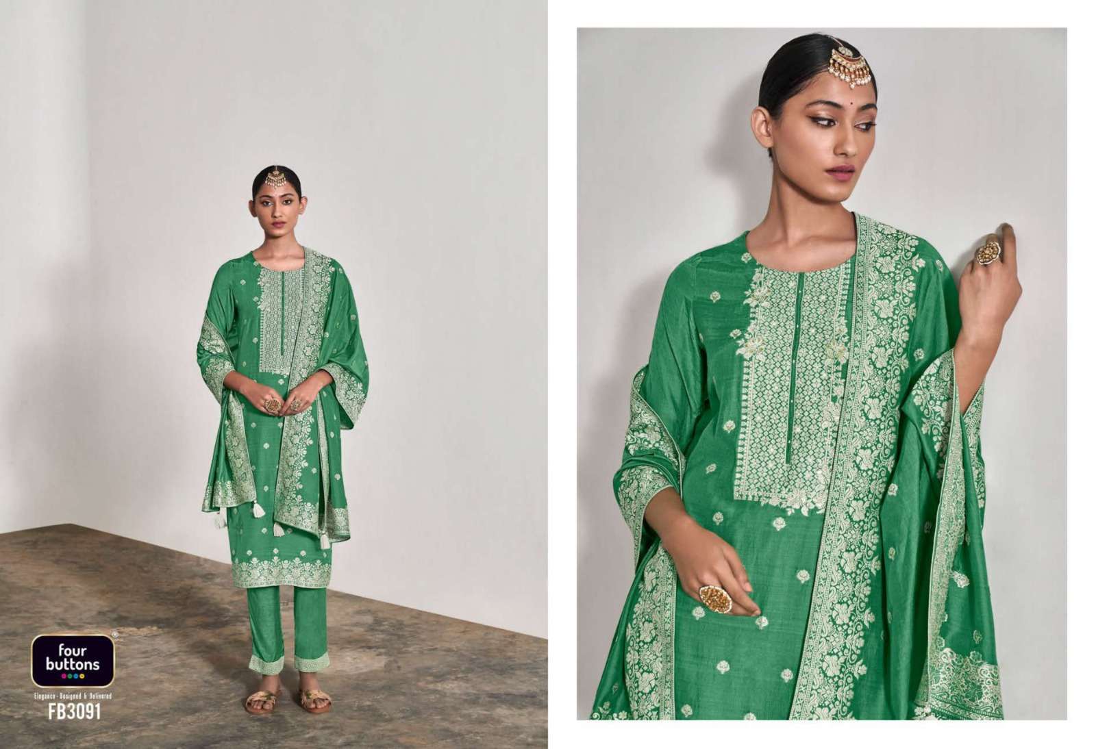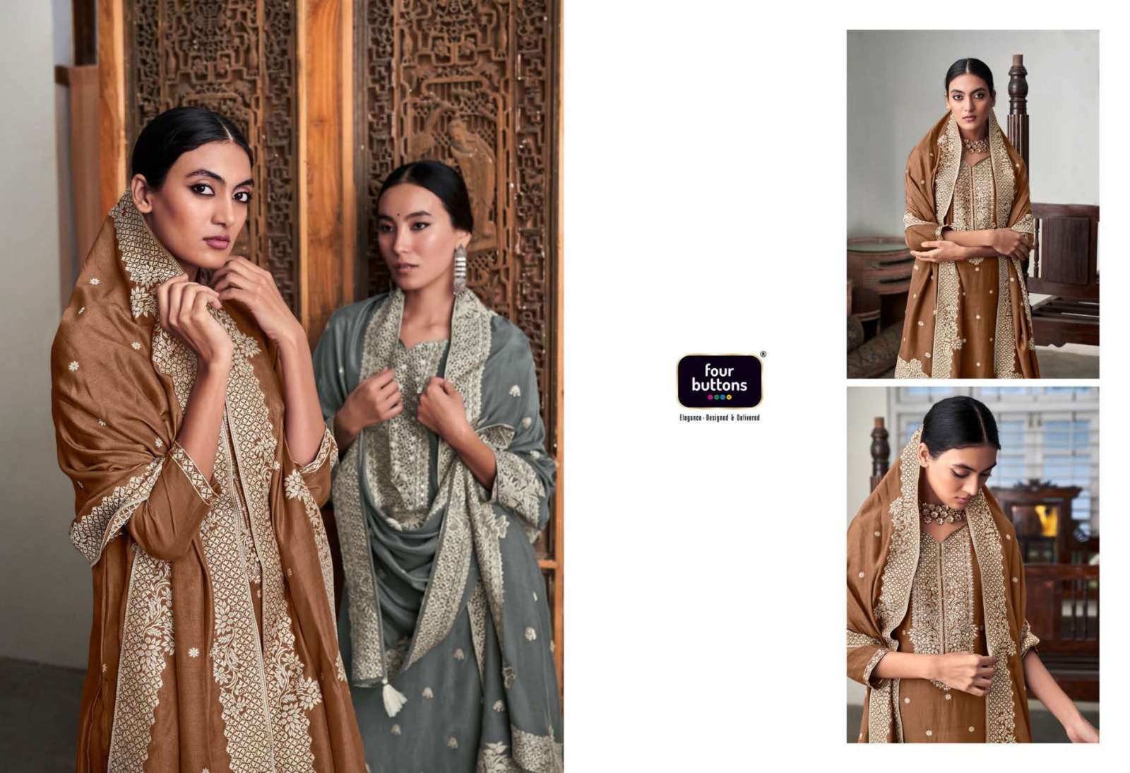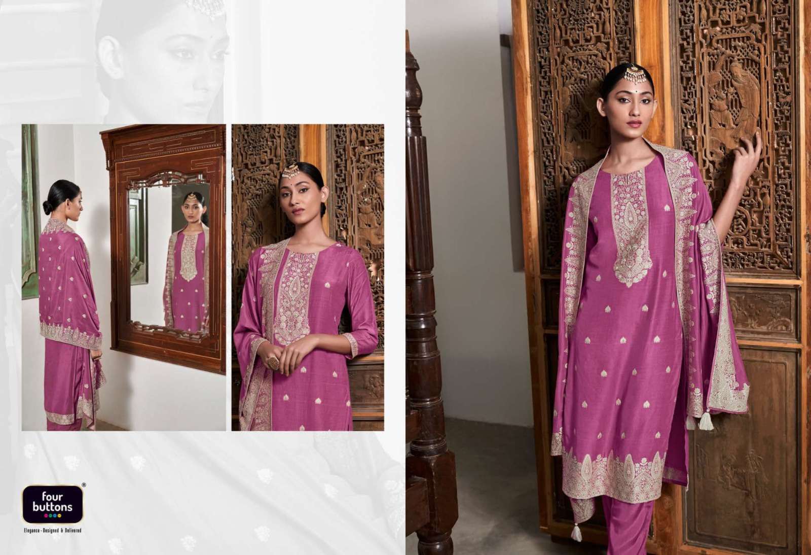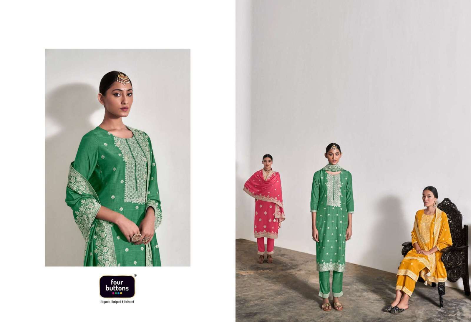 FOUR BUTTONS proudly launches its NEW collection 2023 "ZOYA-2" FABRIC KURTI : PURE MUSLIN LAKHNAVI JACQUARD WITH MX ZARI AND HANDWORK BOTTOM : PURE VISCOSE SILK WITH JACQUARD ATTACHMENT DUPATTA : PURE MUSLIN LAKHNAVI JACQUARD WITH MX ZARI RATE- ₹ 1999/-