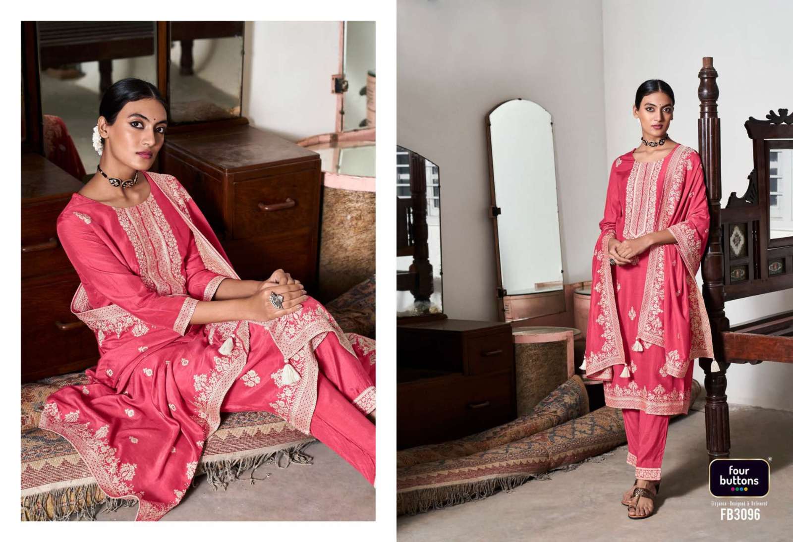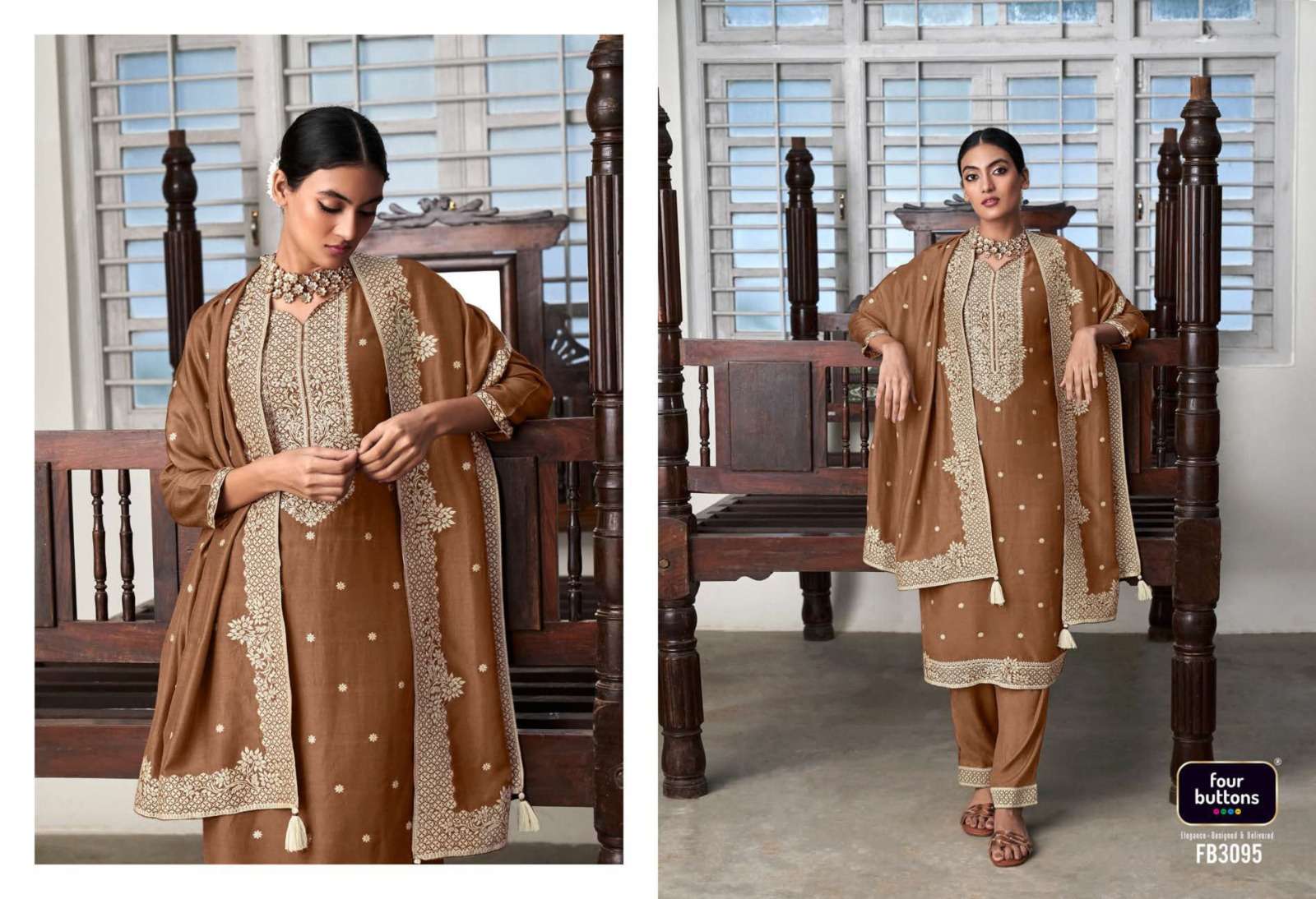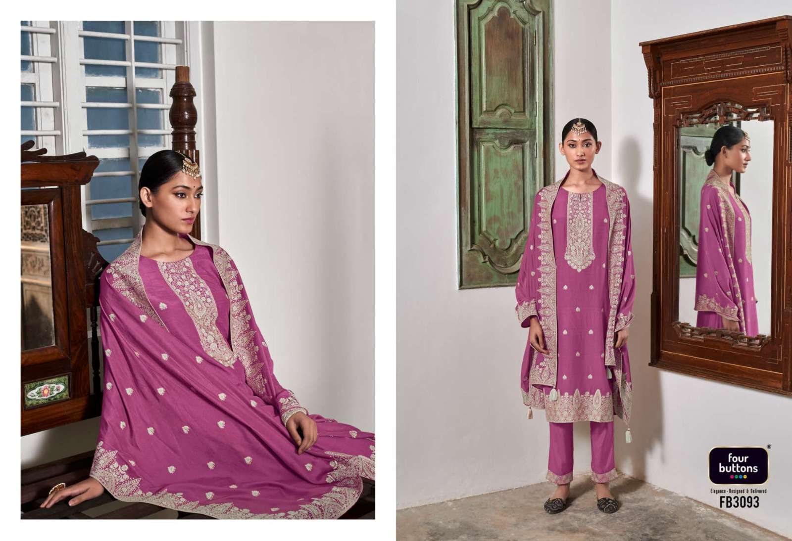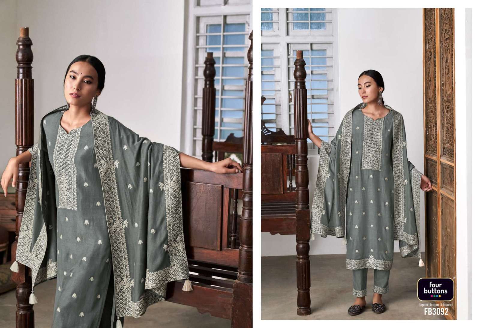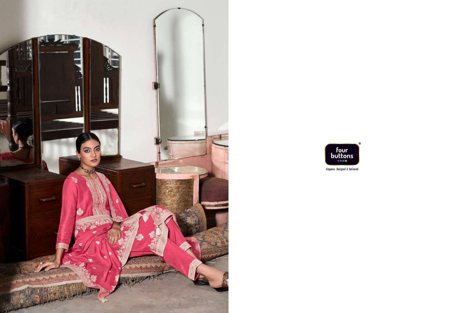 FOUR BUTTONS proudly launches its NEW collection 2023 "ZOYA-2" FABRIC KURTI : PURE MUSLIN LAKHNAVI JACQUARD WITH MX ZARI AND HANDWORK BOTTOM : PURE VISCOSE SILK WITH JACQUARD ATTACHMENT DUPATTA : PURE MUSLIN LAKHNAVI JACQUARD WITH MX ZARI RATE- ₹ 1999/-