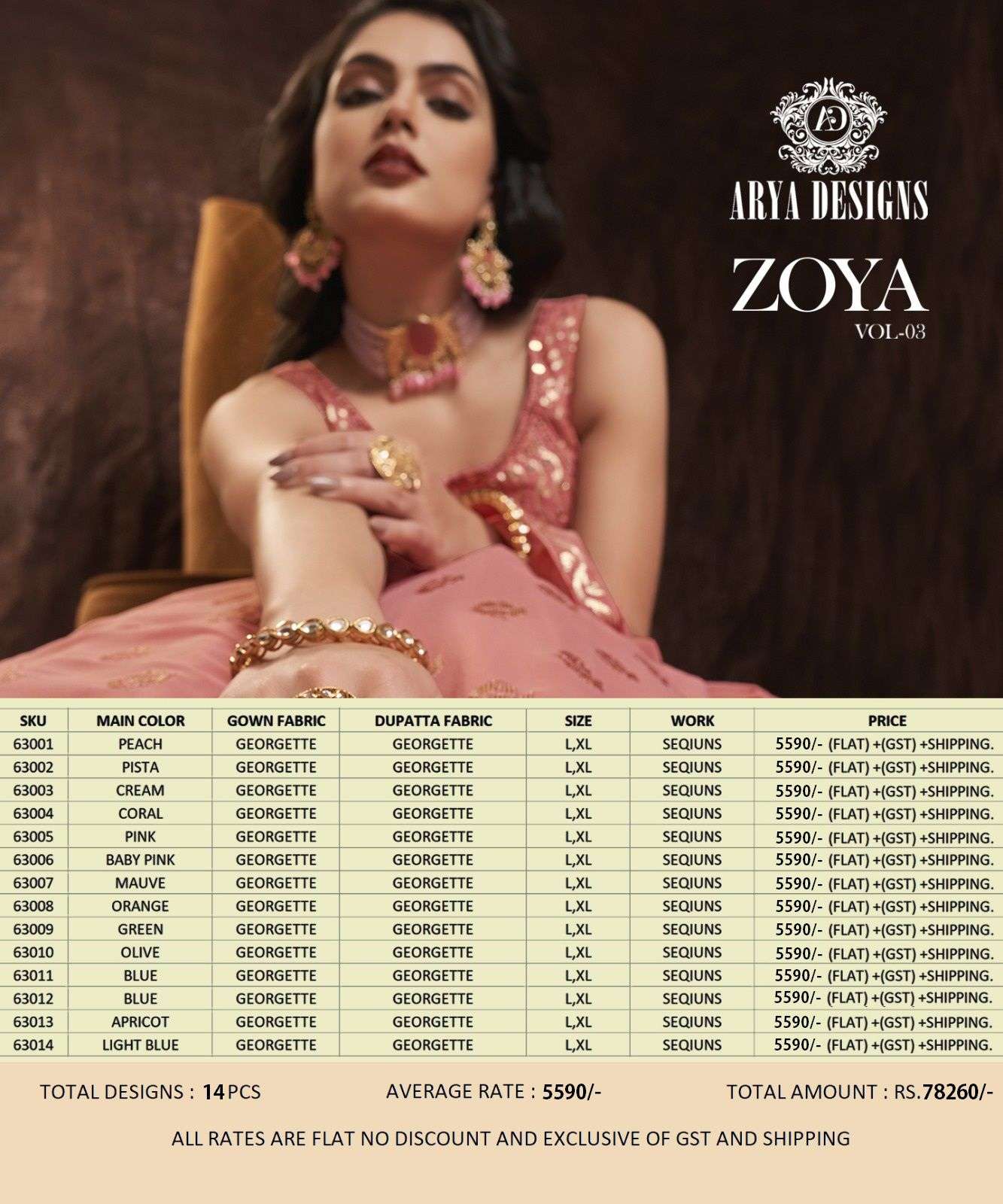 zoya vol 3 by arya designs readymade designer long gown with dupatta