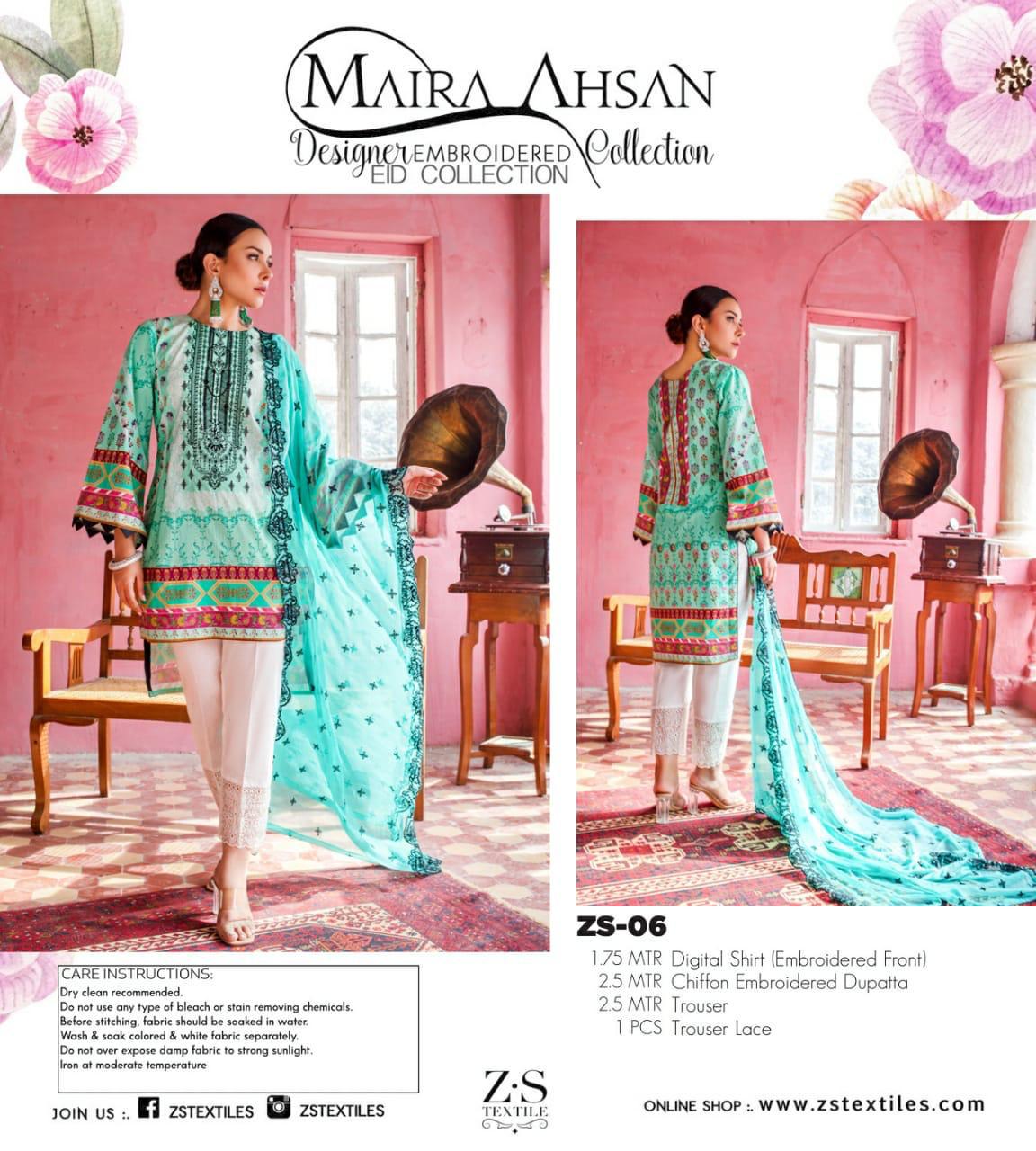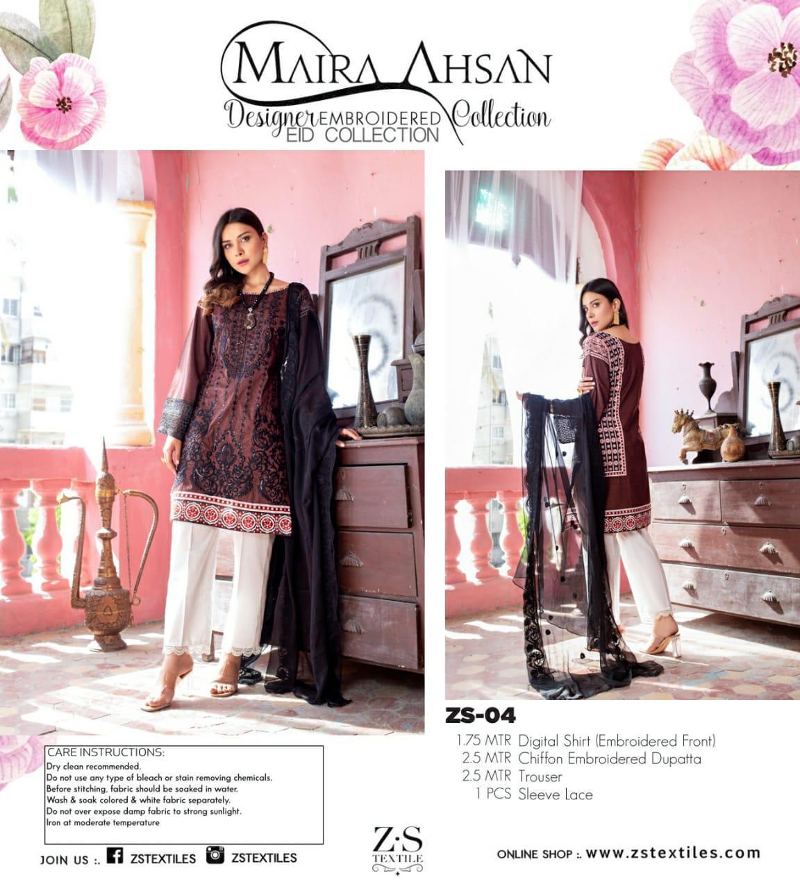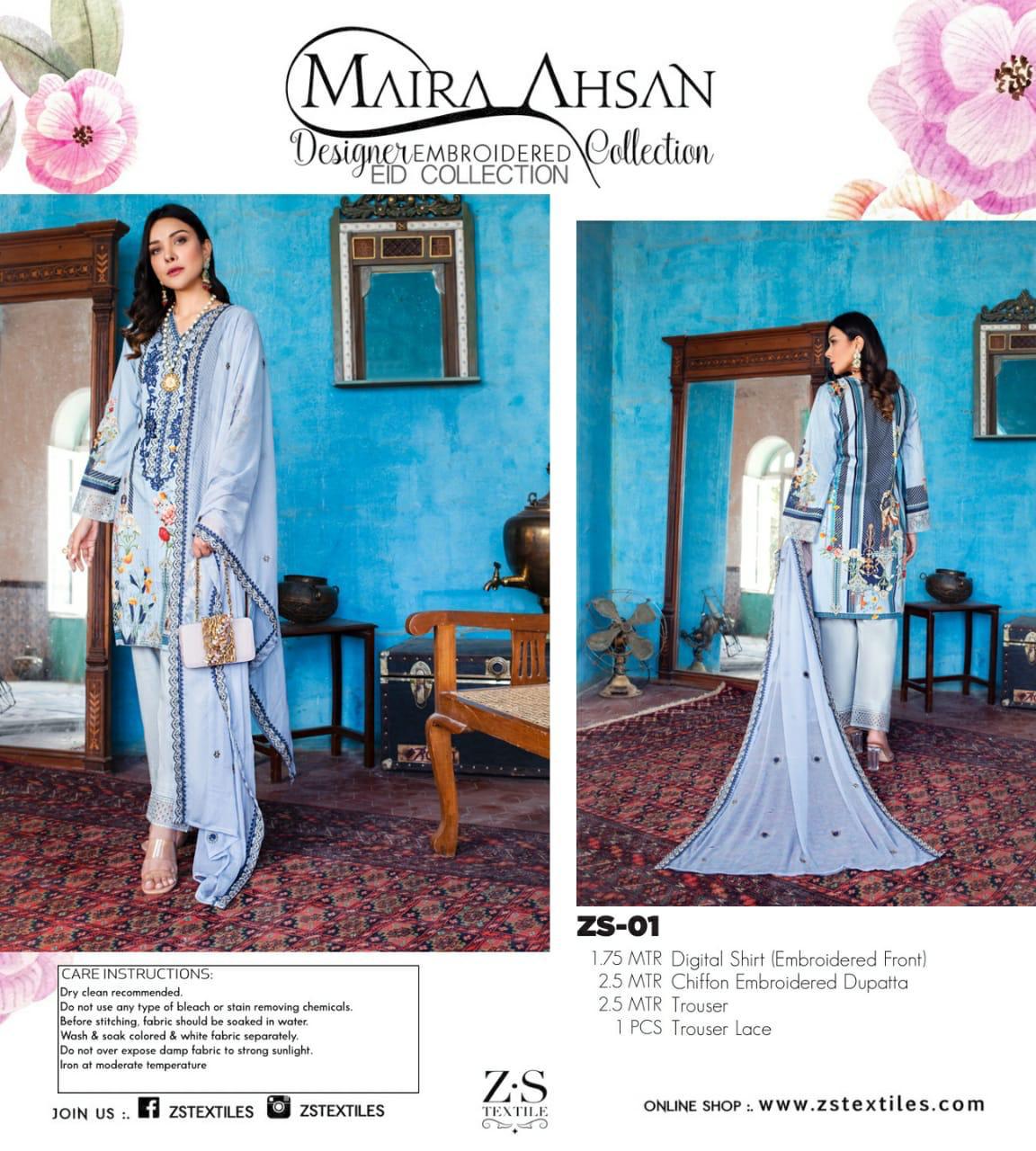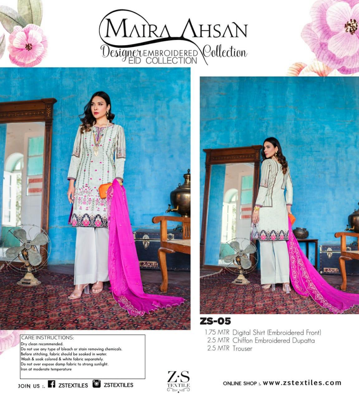 Zs Textiles Maira Ahsan Embroidered Collection Original Lawn Pakistani Suits Wholesaler