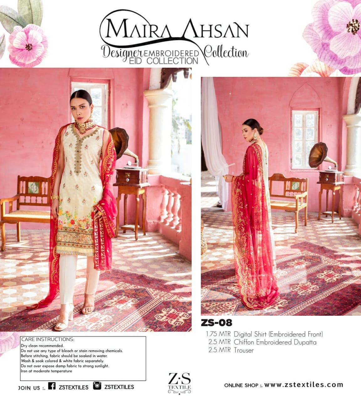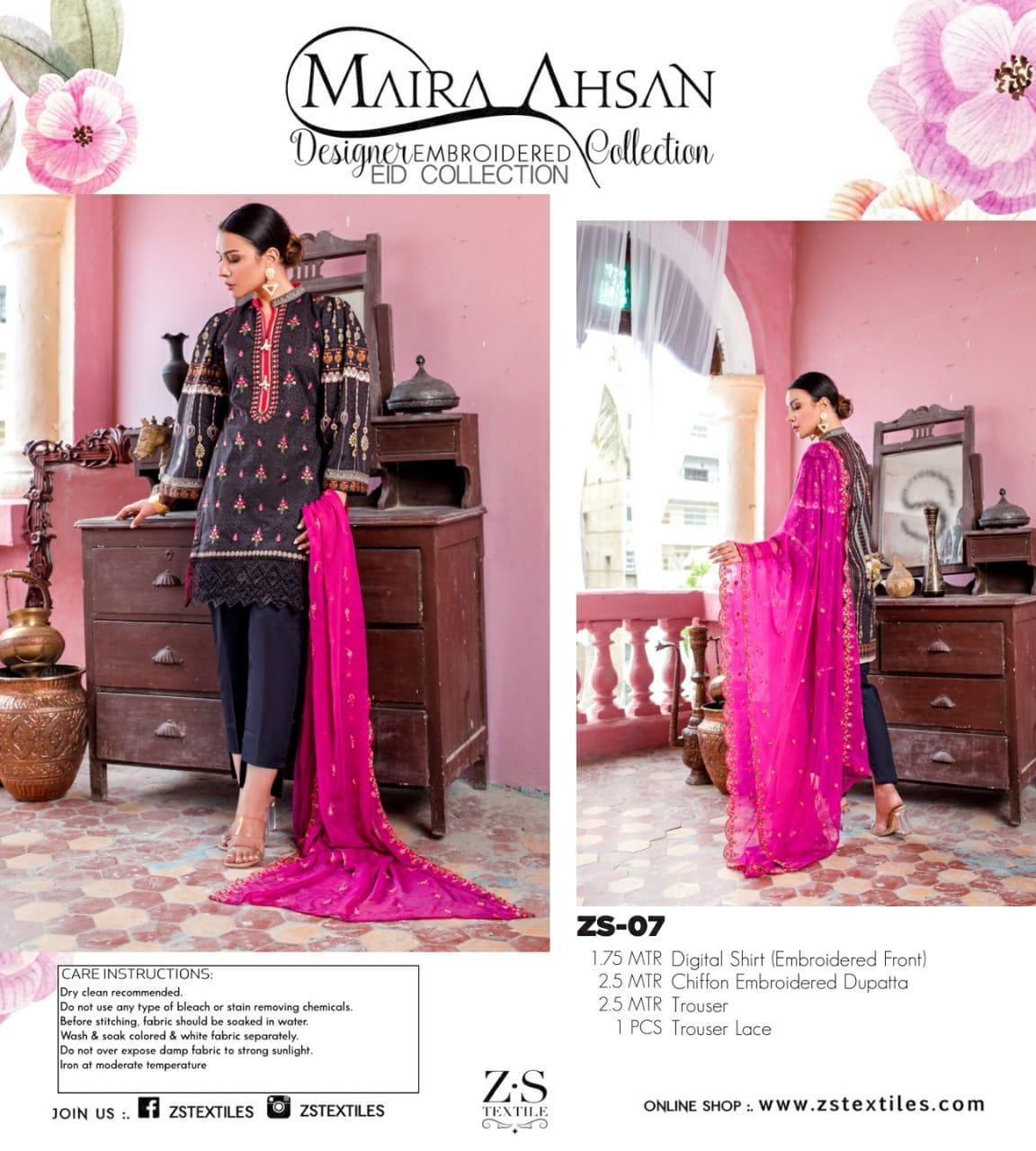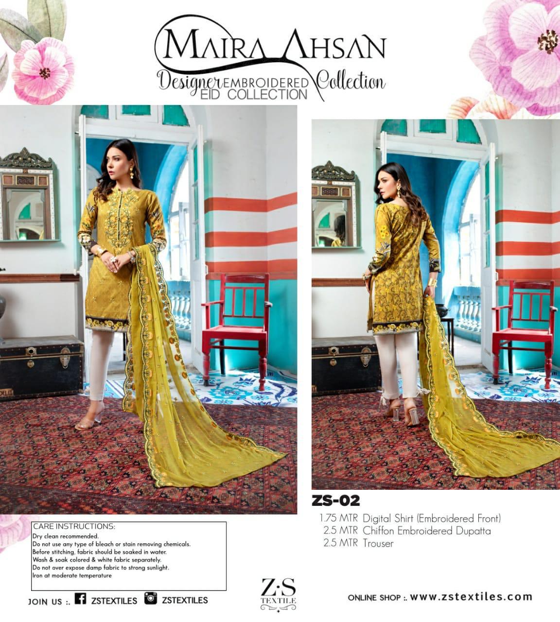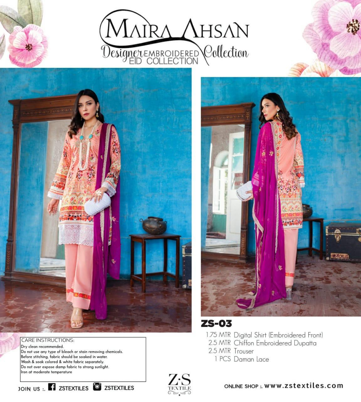 Zs Textiles Maira Ahsan Embroidered Collection Original Lawn Pakistani Suits Wholesaler