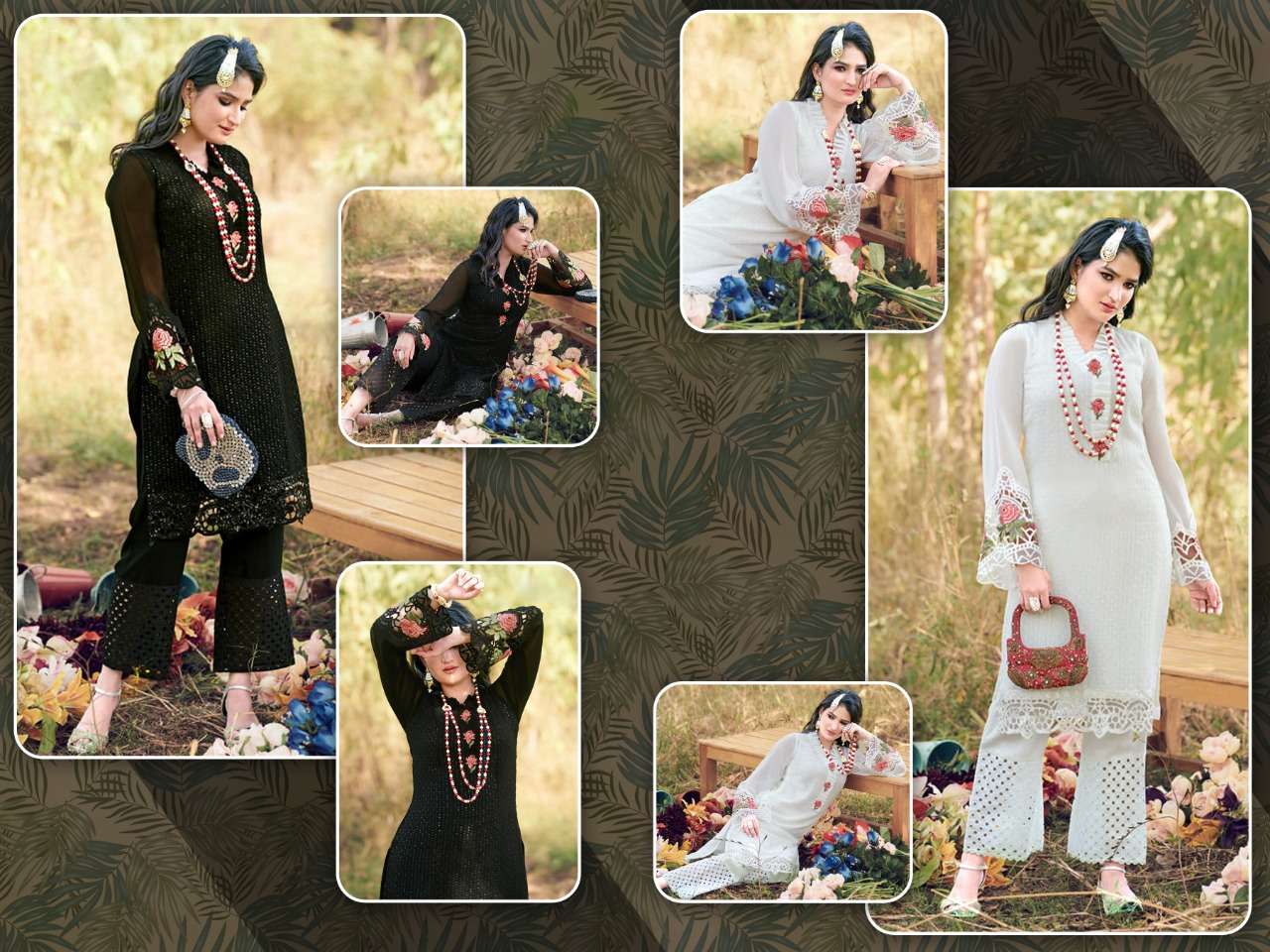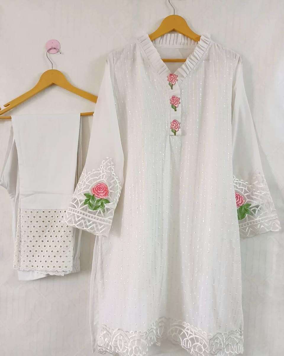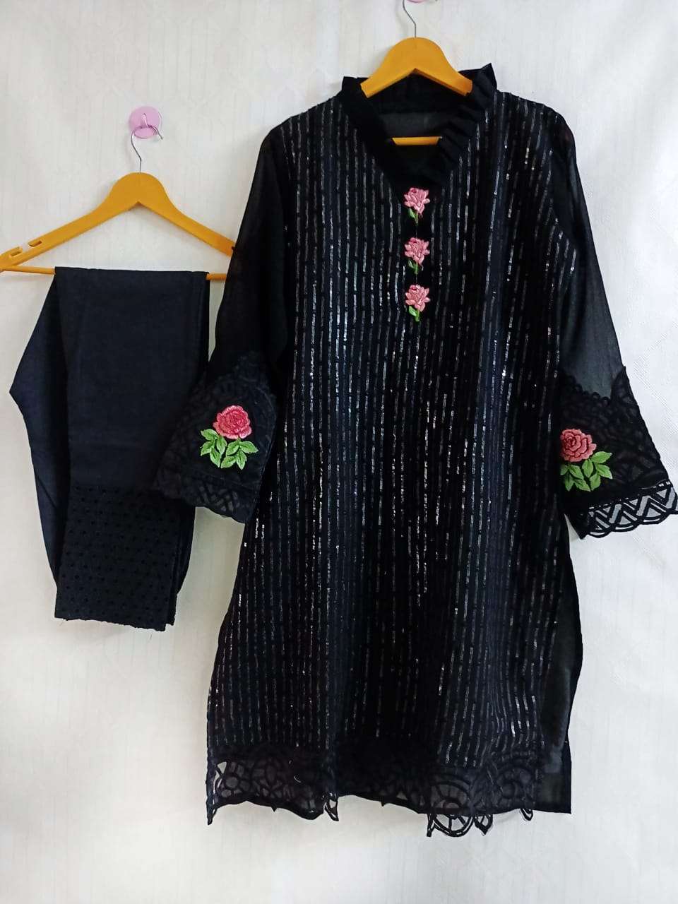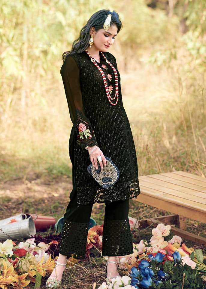 Sophisticated Embrodarey Collection For Festival Seasion      (Z.S Vol :- 26)      ZARA Studio   THE FASHION ICON Description  Designer Stylish Tunic With Classic Sequance Havey Embroidery With Beautiful Cut Work Embroidery On Slives Nd Daman With Button Paired With Designer Cigarette Pants Details Top:- Pure Georgette Inner  :- Santoon Bottom :- pure Strachable Cotton Colour :- 02  (1) White  (2) Black     Size Chart  Top xl size chest (42) Bottom xl size (36-42) Rate :- 1050 /-      Colour may slightly vary due to light effect |