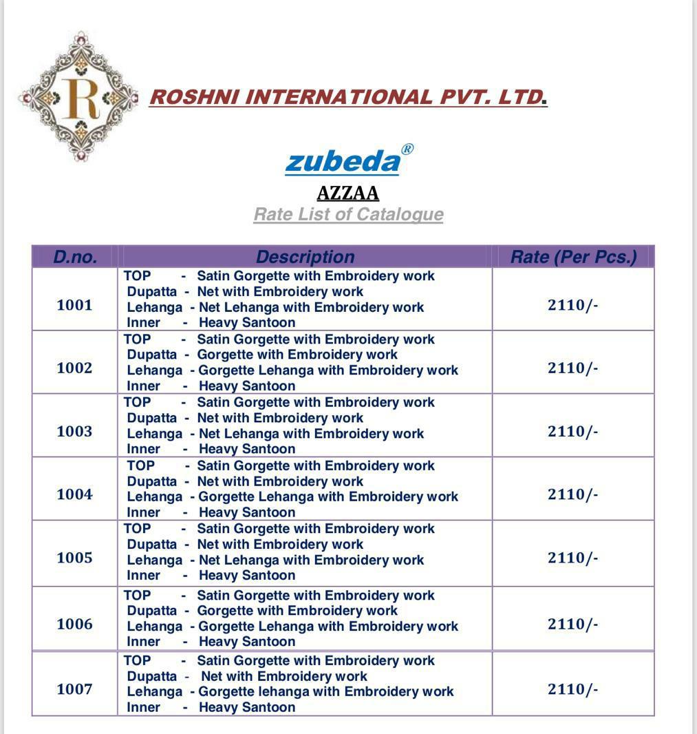 ZUBEDA BRINGS.... AZZAA PARTY WEAR SUITS CATALOG INDIAN DESIGNER DRESSES 7 PC RATE ~ 2110/-â¹ DELIVERY 5-6 DAYS |