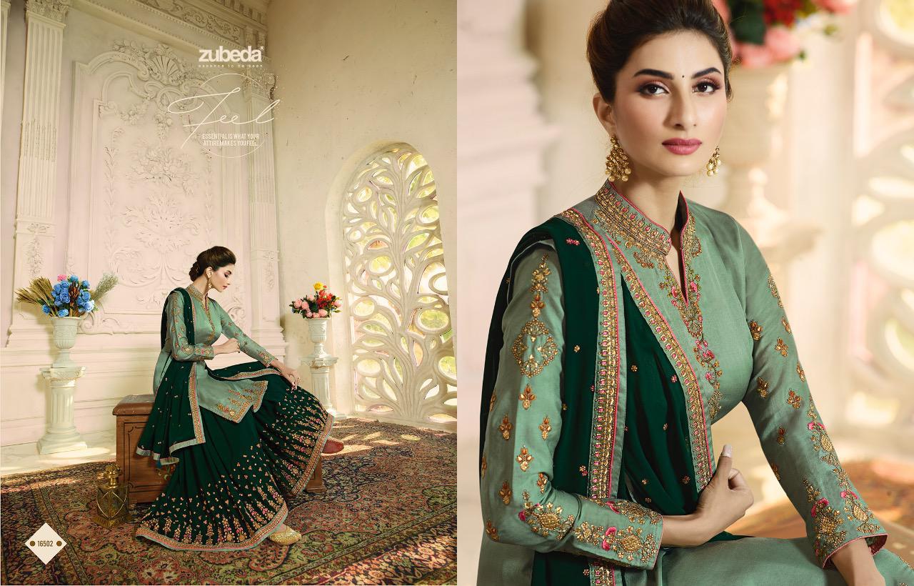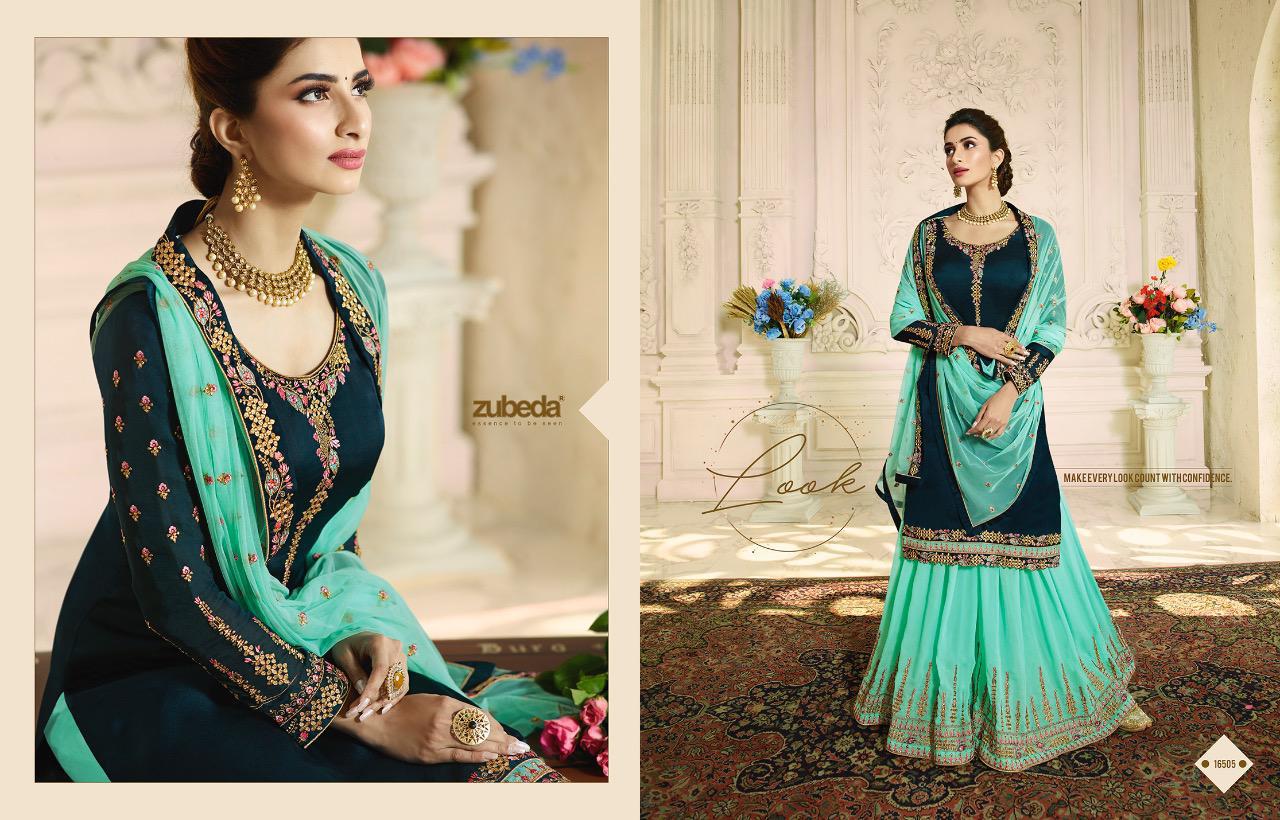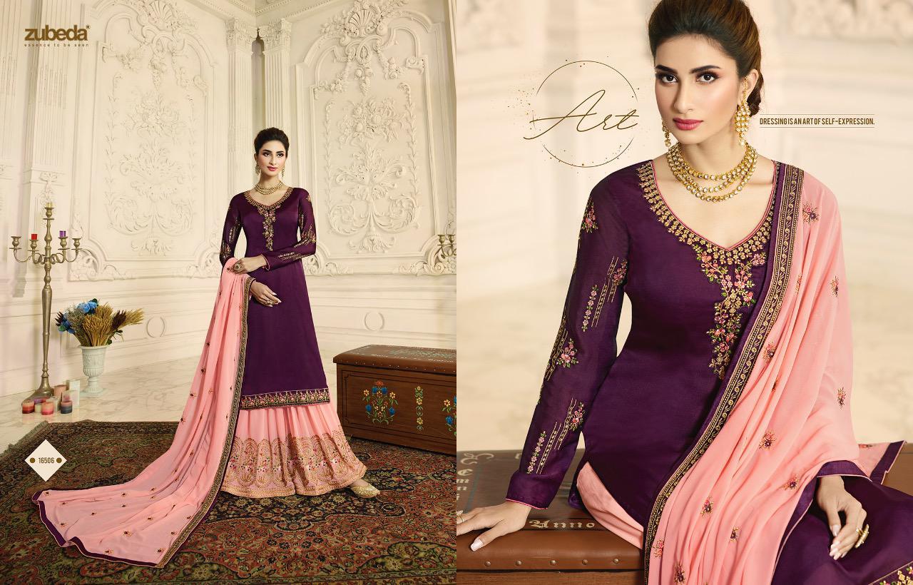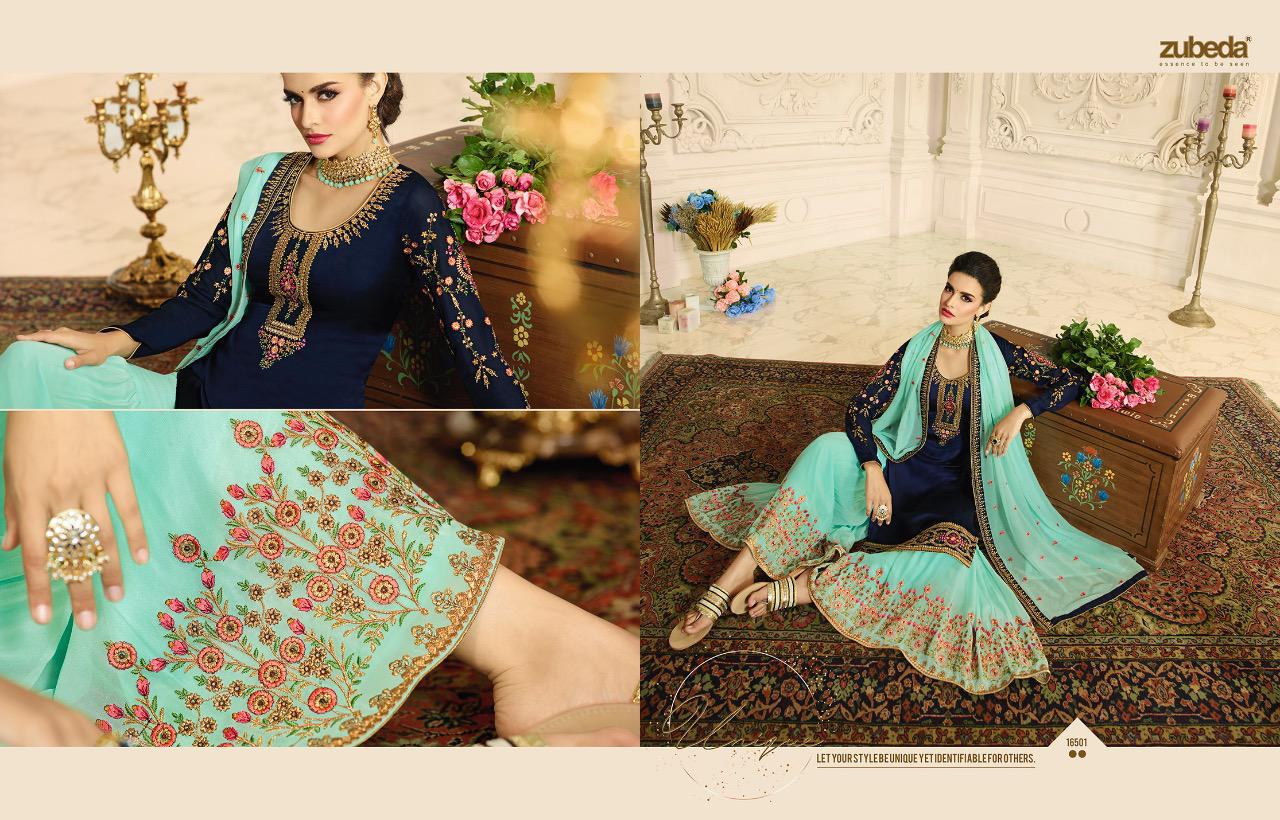 Zubeda Launch Aashka Satin Georgette With Embroidery Work Plazzo Style Suit