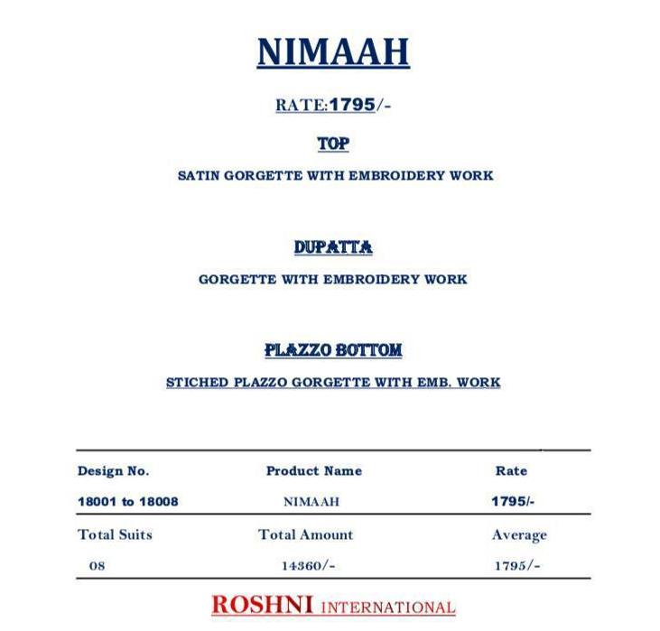 ZUBEDA NIMAAH 8 PC 1795+GST |