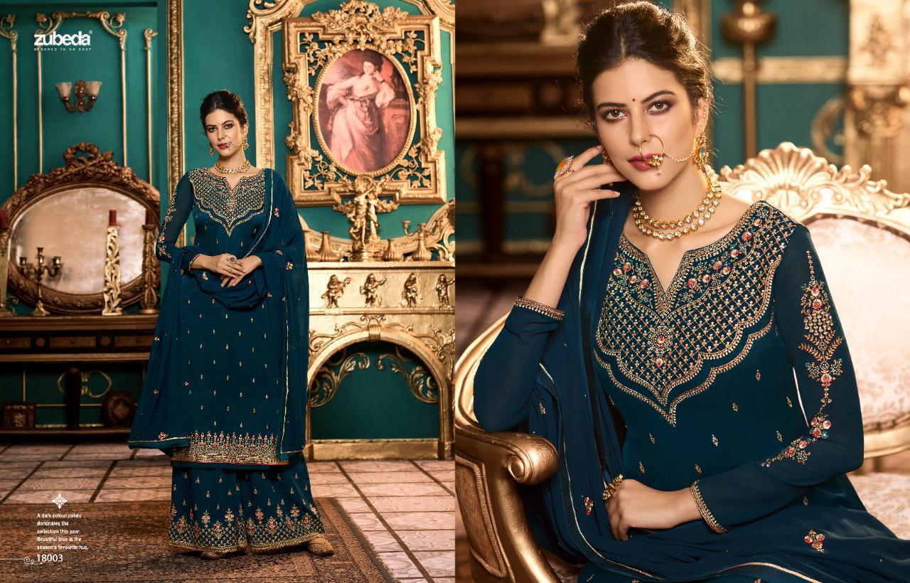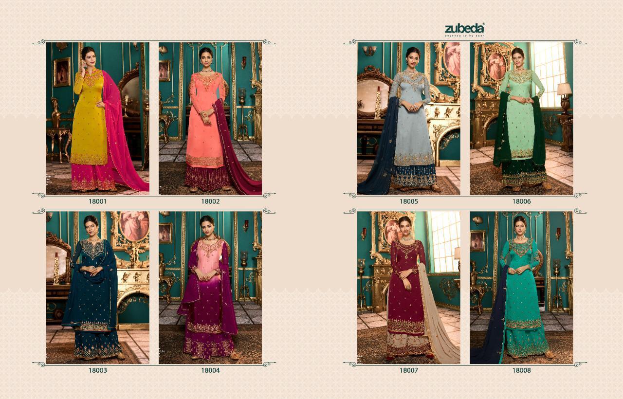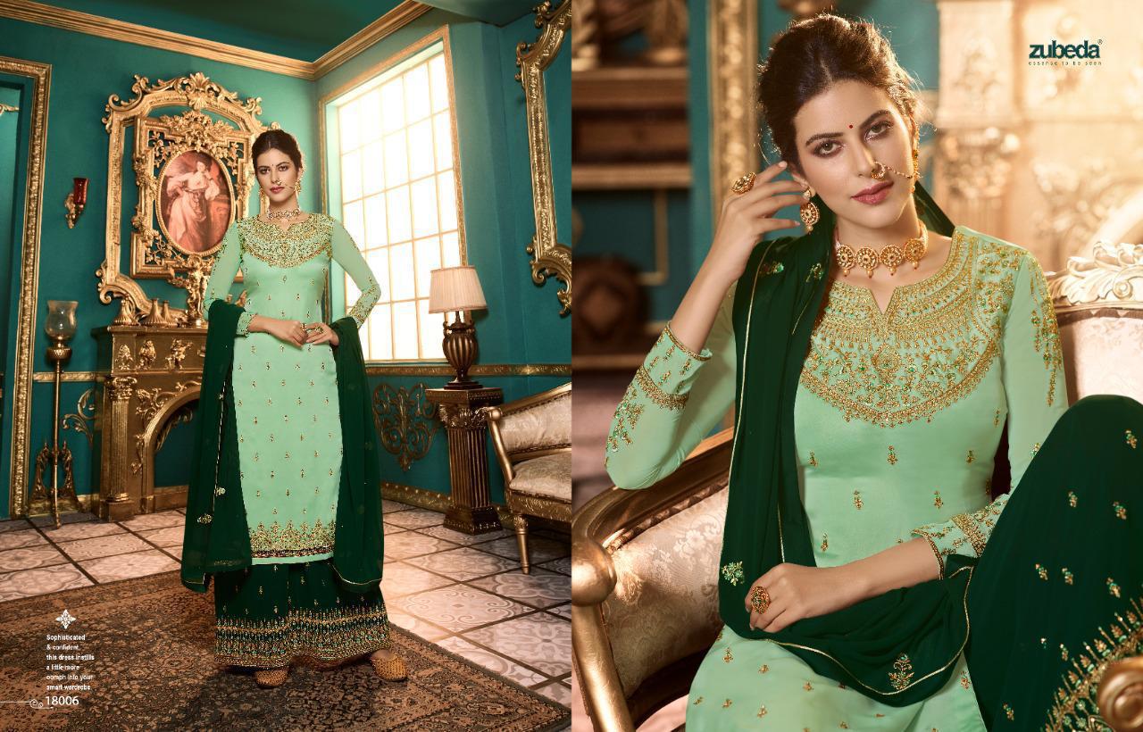 Zubeda Launch Nimaah Satin Georgette Plazzo Style Embroidery Salwar Kameez