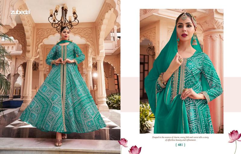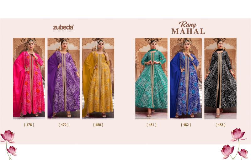 ZUBEDA RANG MAHAL HEAVY DESINGER STICHED GOWN TOP - CHINON SİLK WITH EMB AND DIGITAL PRINT BOTTOM. - STICHED PREMIUM CHINON PLAZO DUPTTA. - CHINON SILK WITH LACE TASSLE SIZE - L ,XL XXL,XXXL Set to set Readymade stiched suit Rate 1365/- |