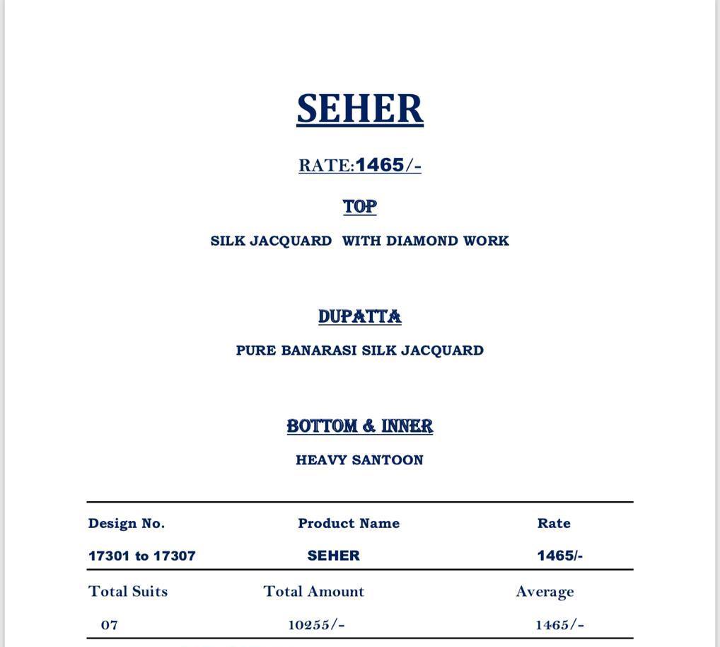 Brand - Zubeda . Catlog name - SEHER. Set To Set . GST 5 Percent Extra. Delivery- 3-4 days |