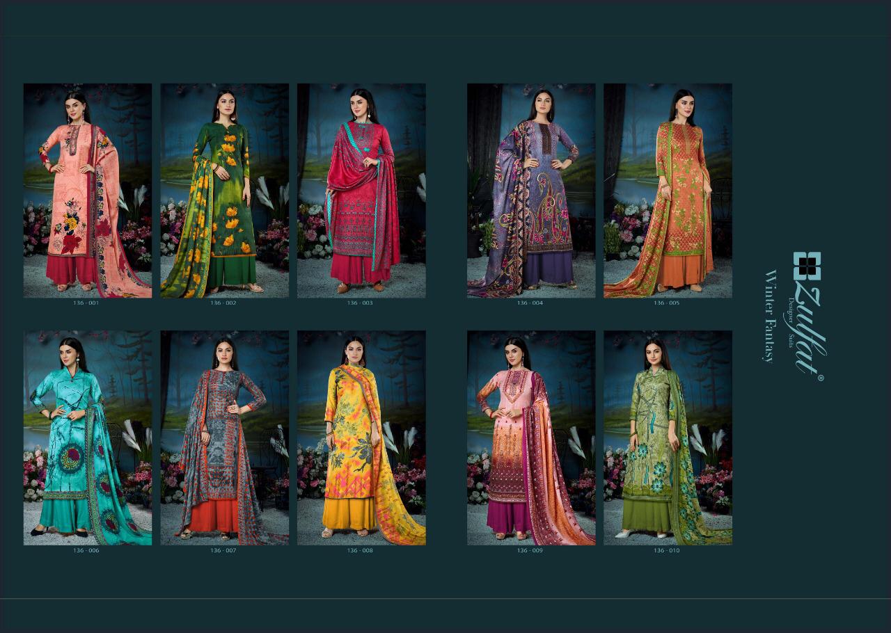 Zulfat Designer Launch Winter Fantasy Vol 2 Pashmina Digital Print Salwar Suits