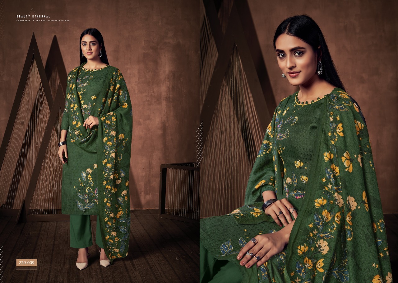 # Pure Pashmina ”Zulfat Designer Suits” Presents "WINTER MAGIC" designer woolen collection Vol-4 🔸 Top: 100% Pure Pashmina Digital Style Print (2.50 mtrs) 🔸 Dupatta: Pure Pashmina Shawl with four side lace (2.30 mtr) 🔸 Bottom: Pure Pashmina Spun (3 mtrs apx) 🔸Pcs: 10 🔸Rate: 395/- (GST extra) # Book Now |