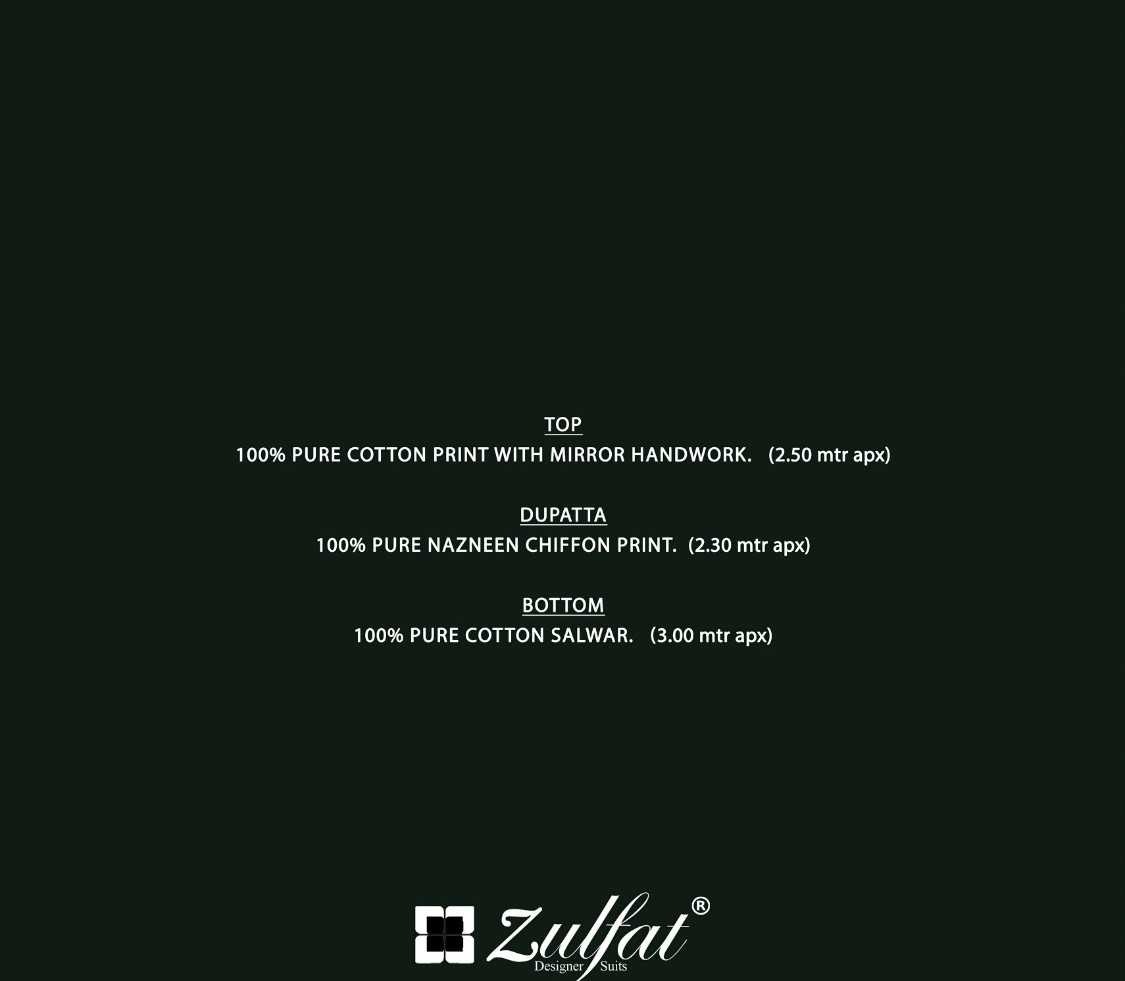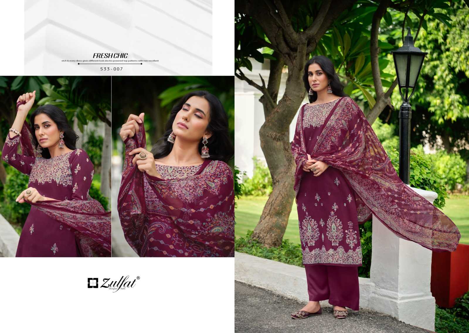 Zulfat Presents Latest Collection Launched on 21-03-2024. Presenting Beautiful collection of 8 PCS with Unstitched .