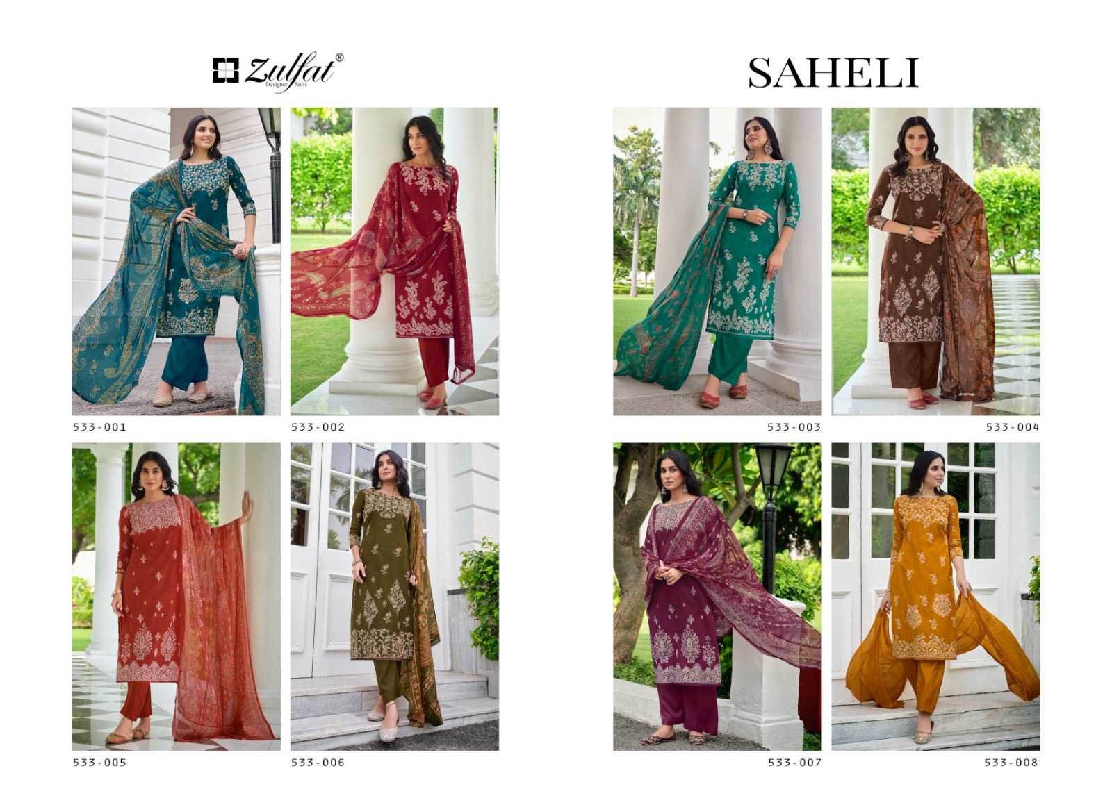 # SAHELI by ZULFAT ......Zulfat Designer Suits...... presents "SAHELI" 🔺Dupatta: 100% Pure Nazneen Chiffon Print (2.30 mtrs apx) 🔺Bottom: 100% Pure Cotton Salwar (3 mtrs apx) 🔺Pcs: 08 🔺 Rate: 449/- |