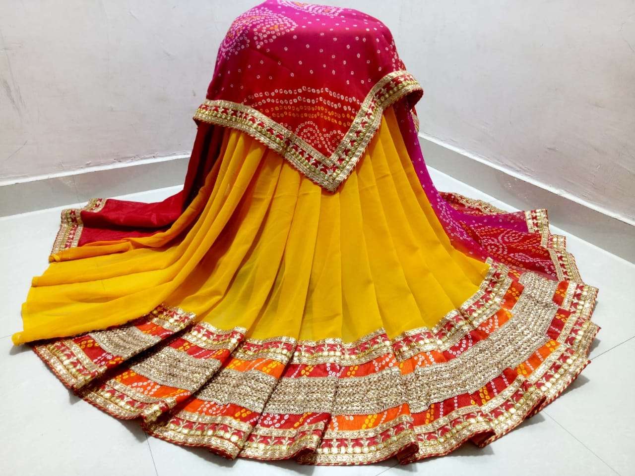 karishma by jalnidhi moss chiffon bandhani half half without joint saree