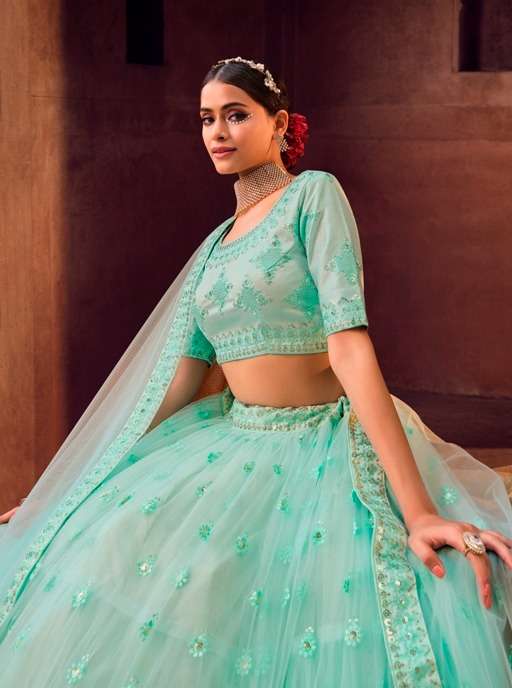 zeel 7906 amazing aqua blue color heavy work single lehenga choli