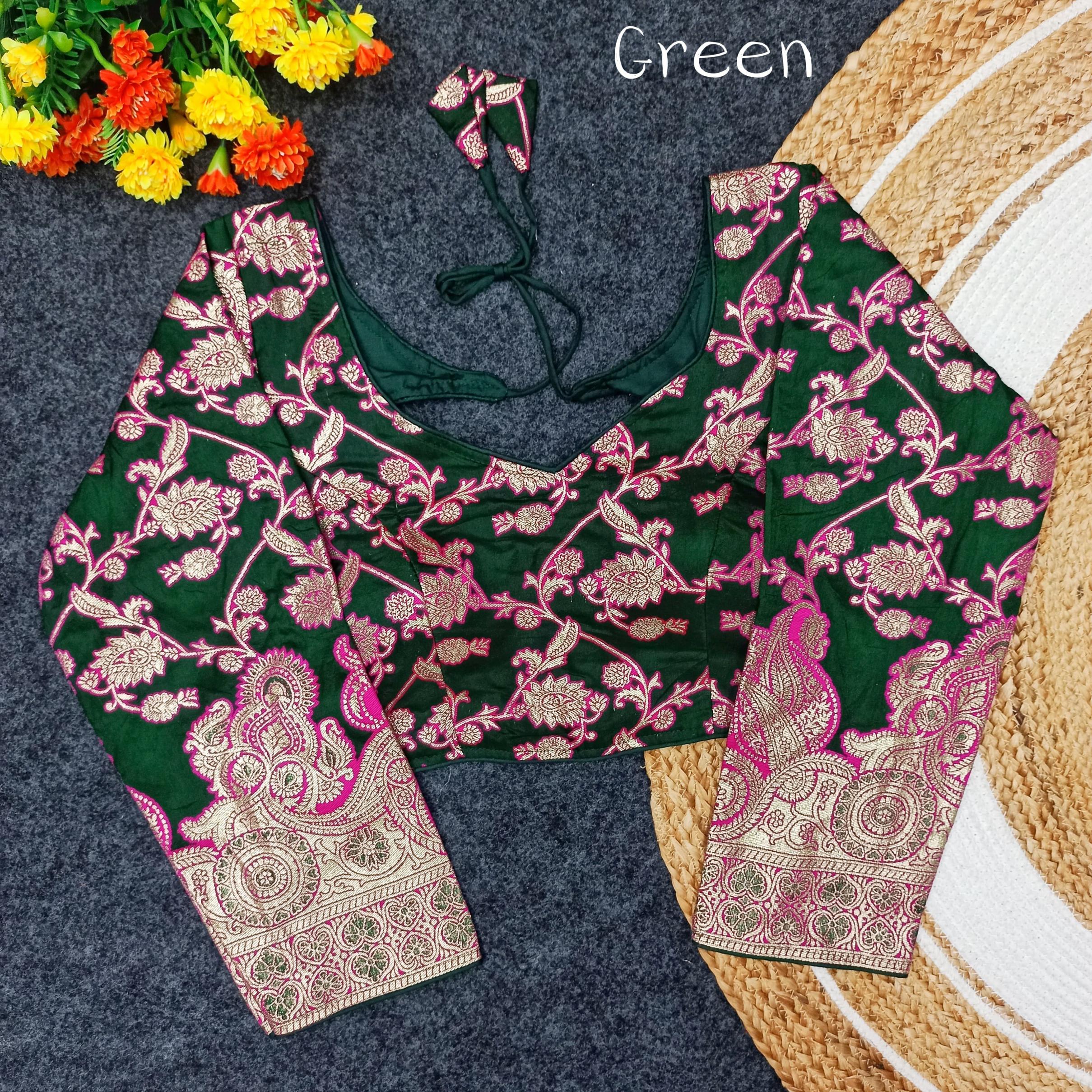 pr tulsi copper stylish look round neck jari banarasi jacquard readymade blouse