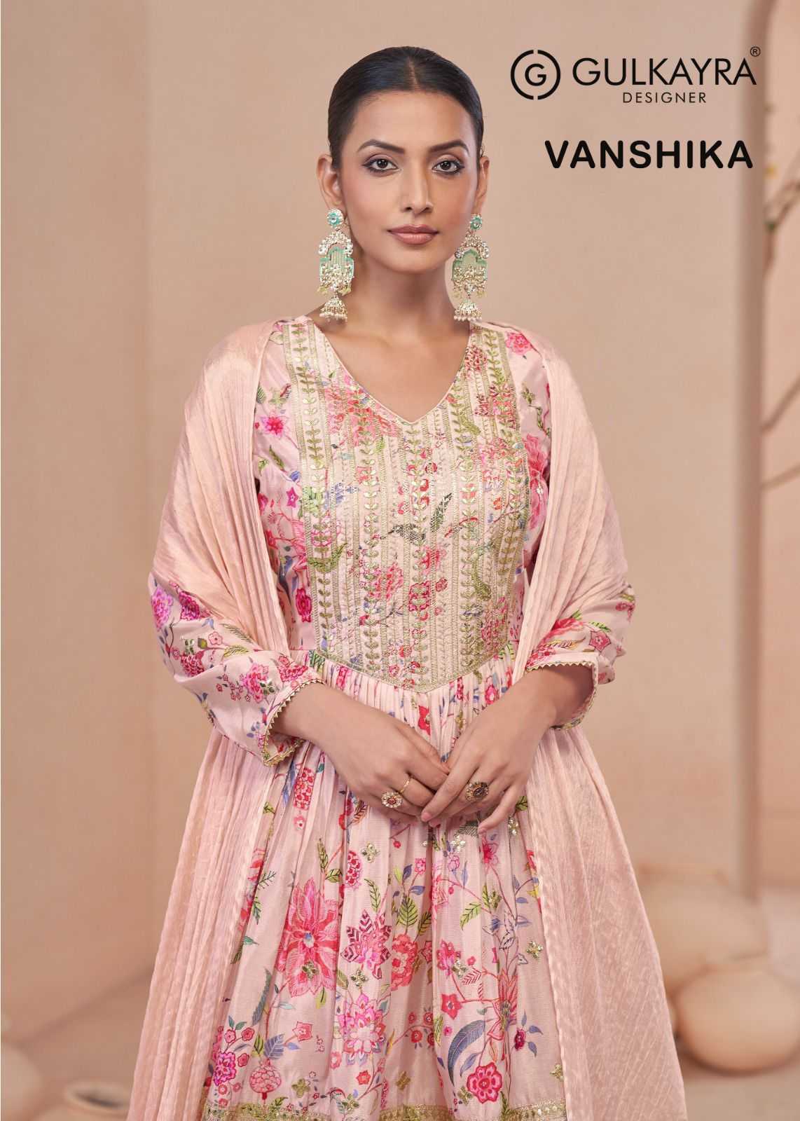 gulkayra designer apsara vol 5 chinon exclusive full stitch plazzo style 3pcs dress