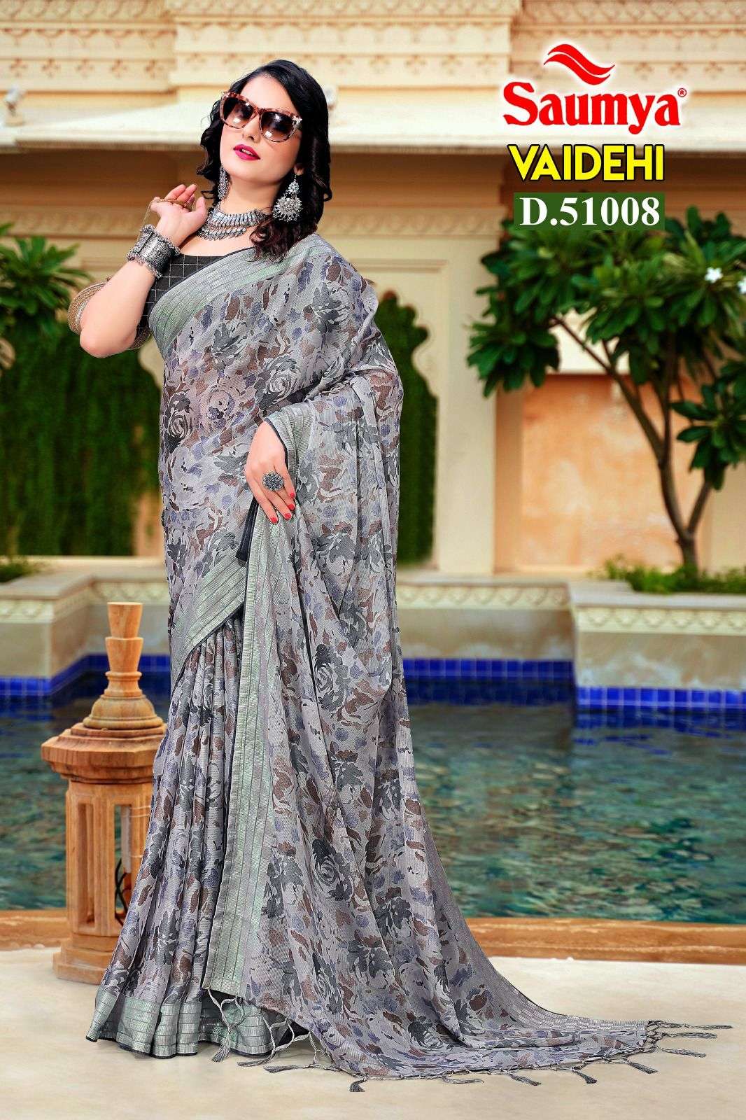 Glossy by astita fancy designer linen fabric saree with Lakhnavi Bordar wholesale saree with latkan