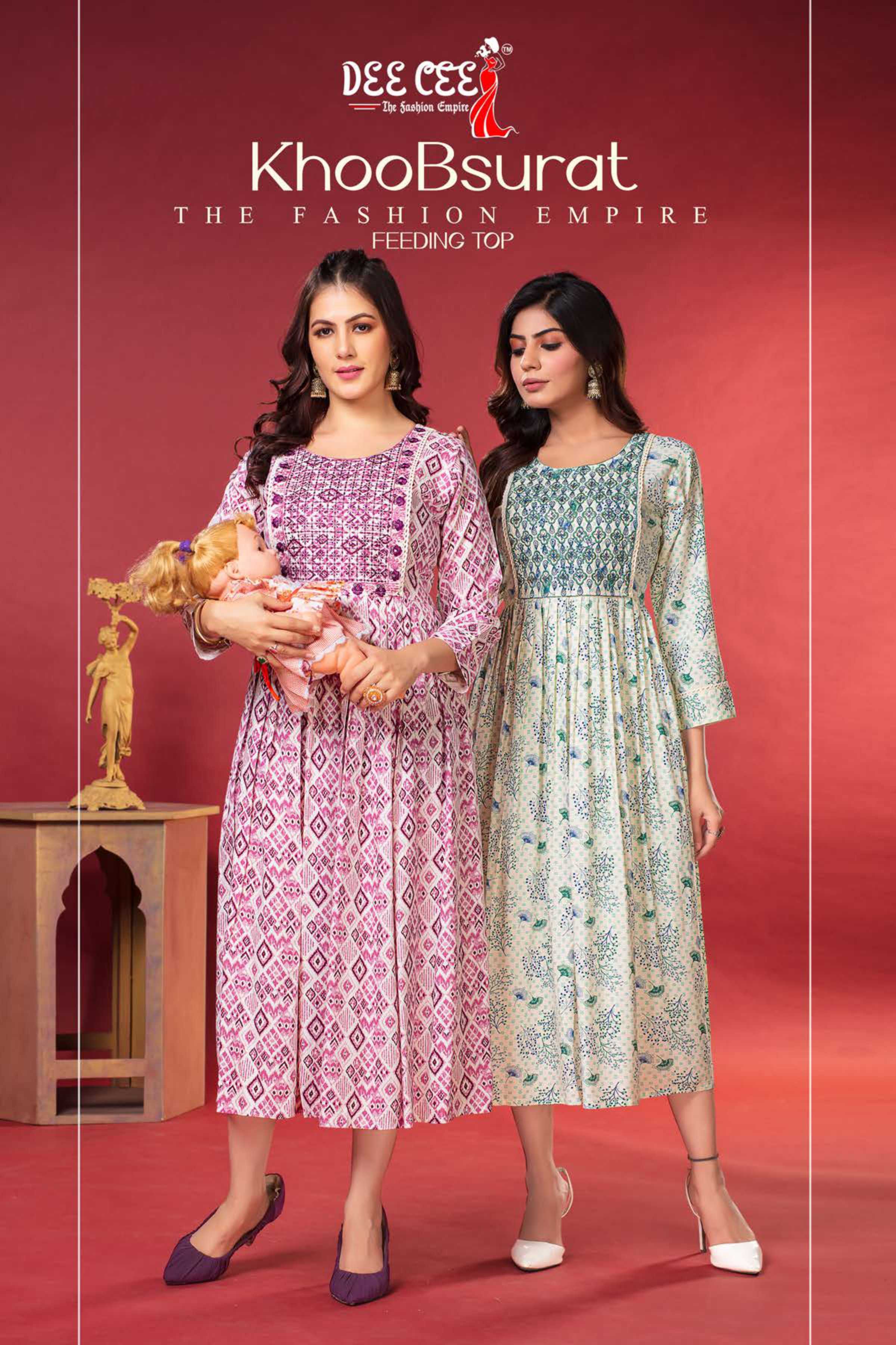 dee cee khoobsurat fancy flared stitch feeding kurtis