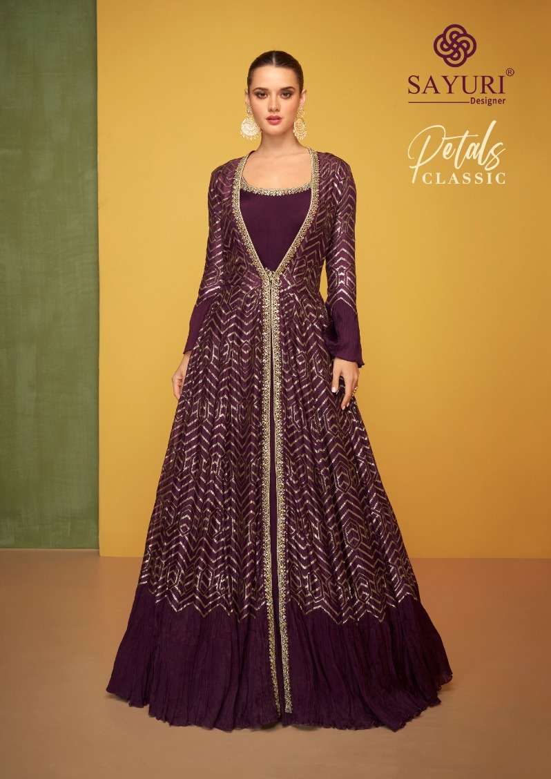 sayuri designer karishma full stitch viscose simar jacquard silk anarkali gowns with jackets