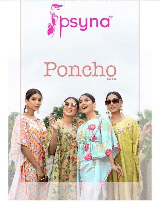 poncho vol 2 by psyna muslin printed stylish kaftan with santoon pant collection