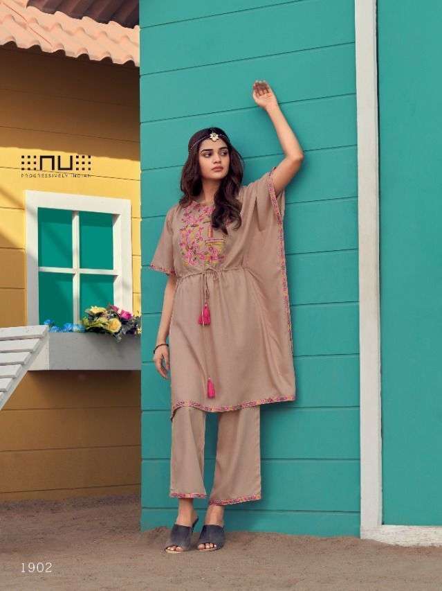 nu vol 19 rayon work fancy western kaftan with pant readymade collection