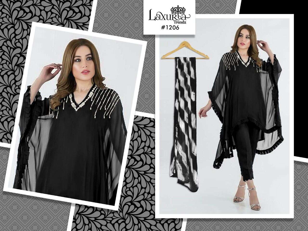 laxuria trendz 1206 georgette stylish kaftan with pant readymade set
