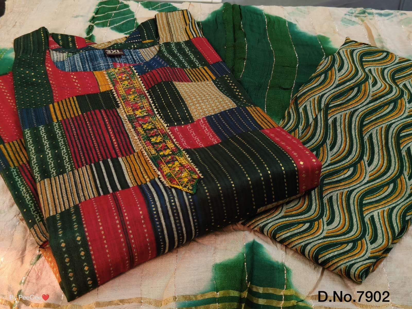 pure chinon exclusive readymade handwork combo kurti with plazzo