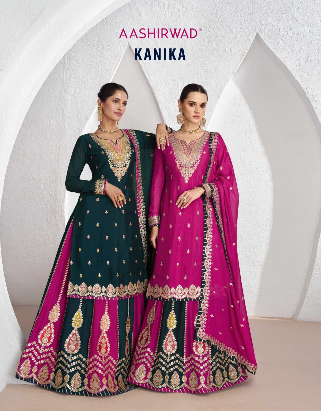 aashirwad creation rakhi chinon silk readymade exclusive skirt kurti with dupatta