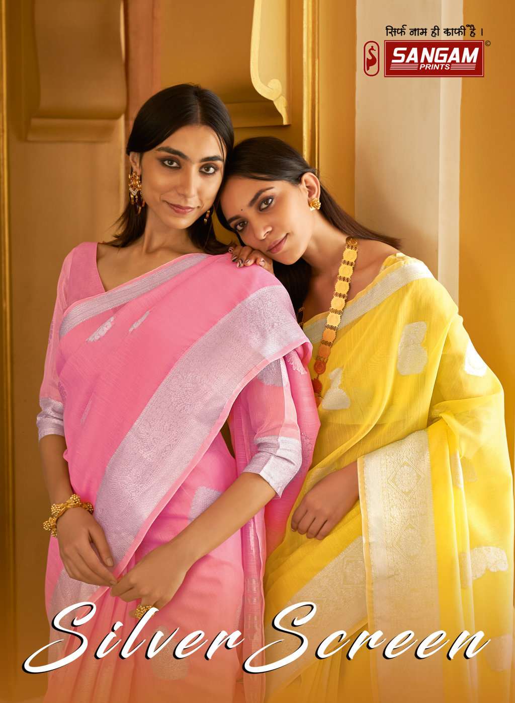 sr launch grassy shaded print linen pattern saree with fancy blouse