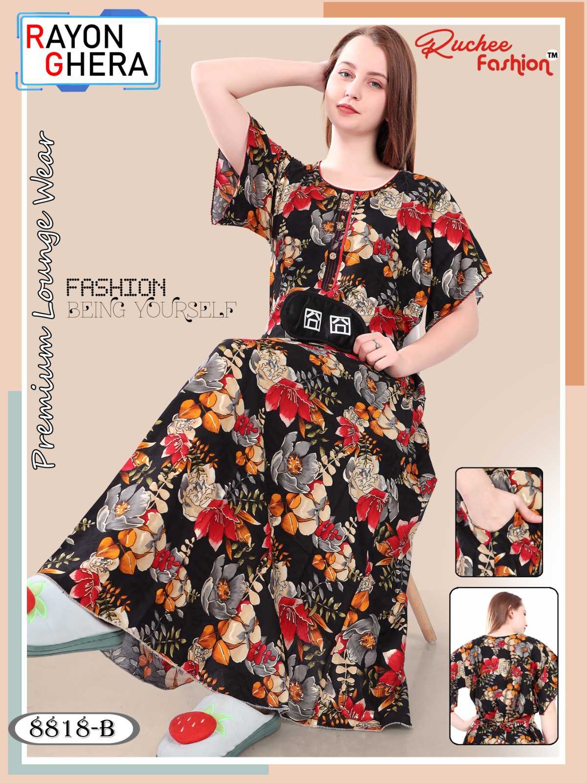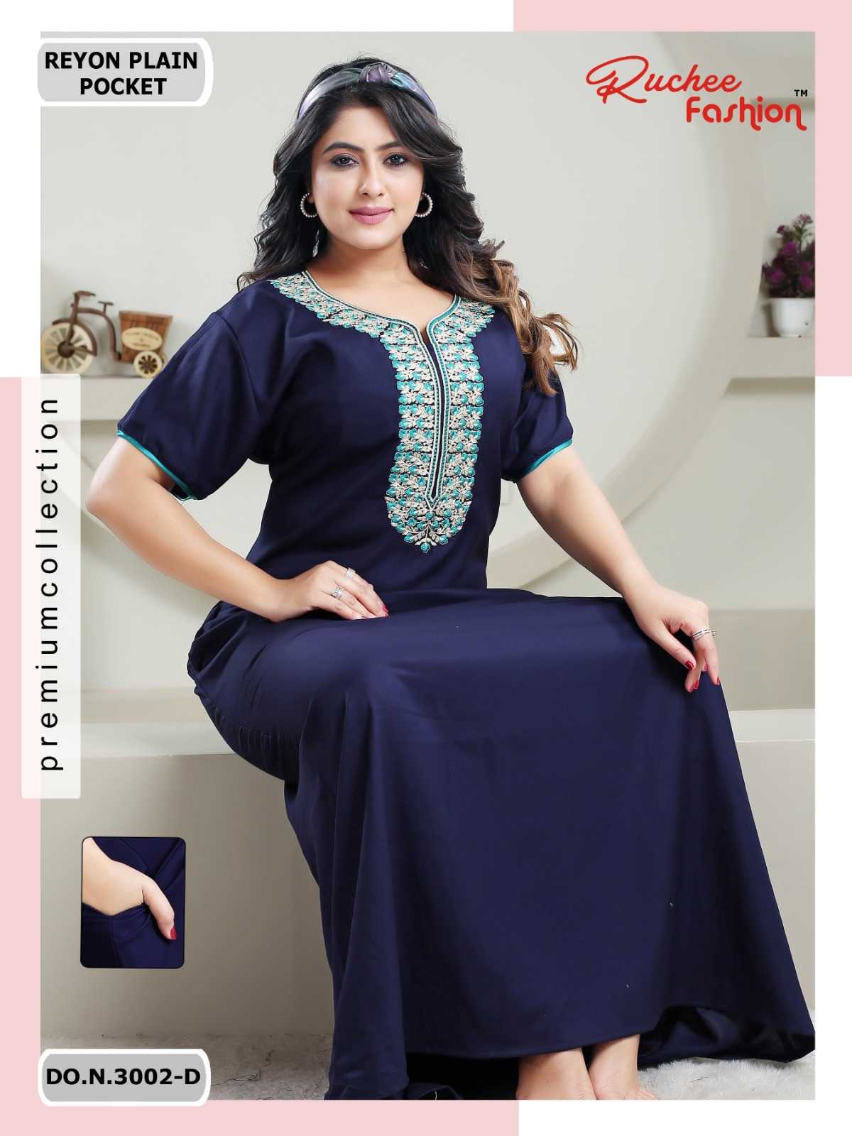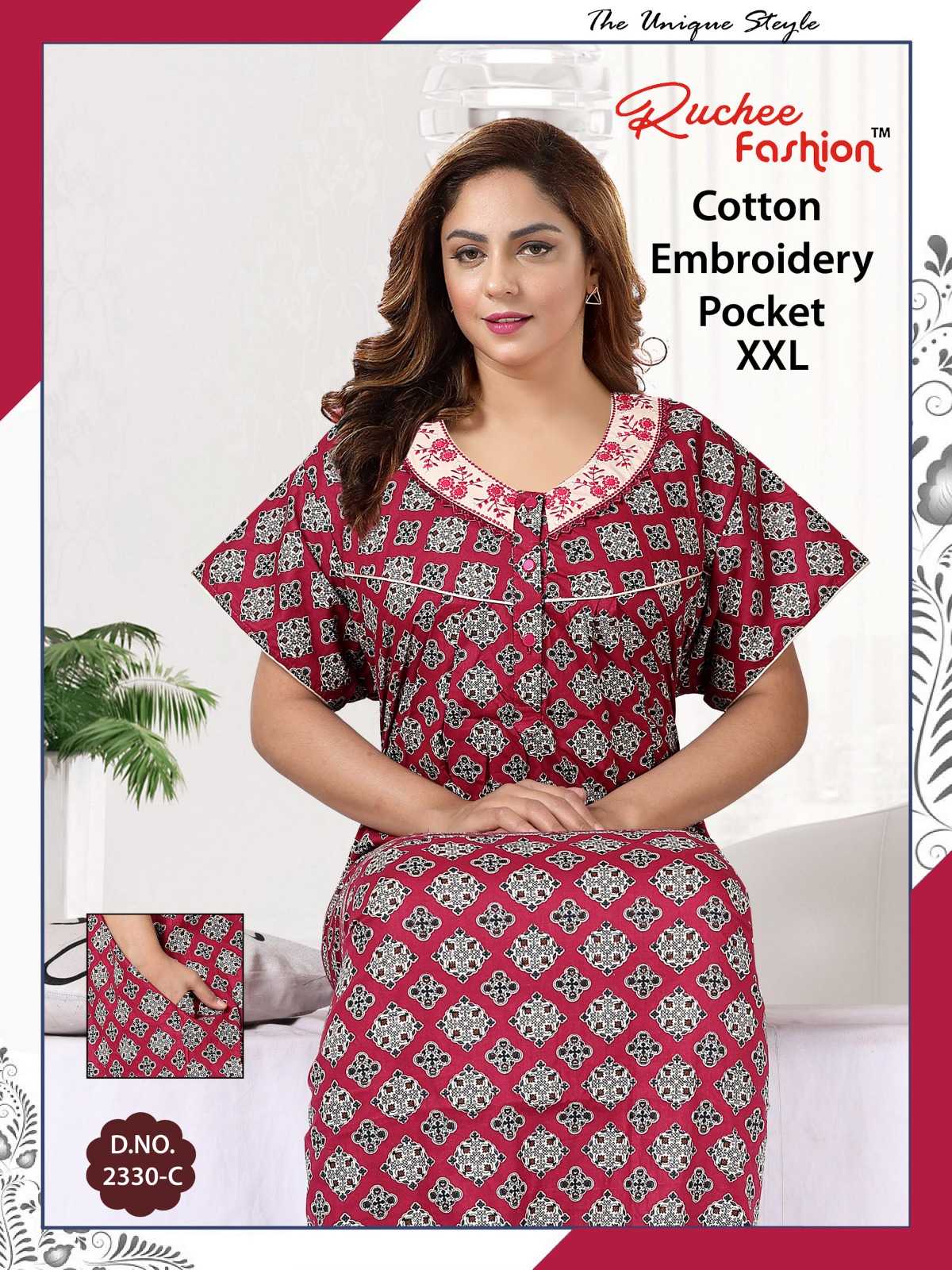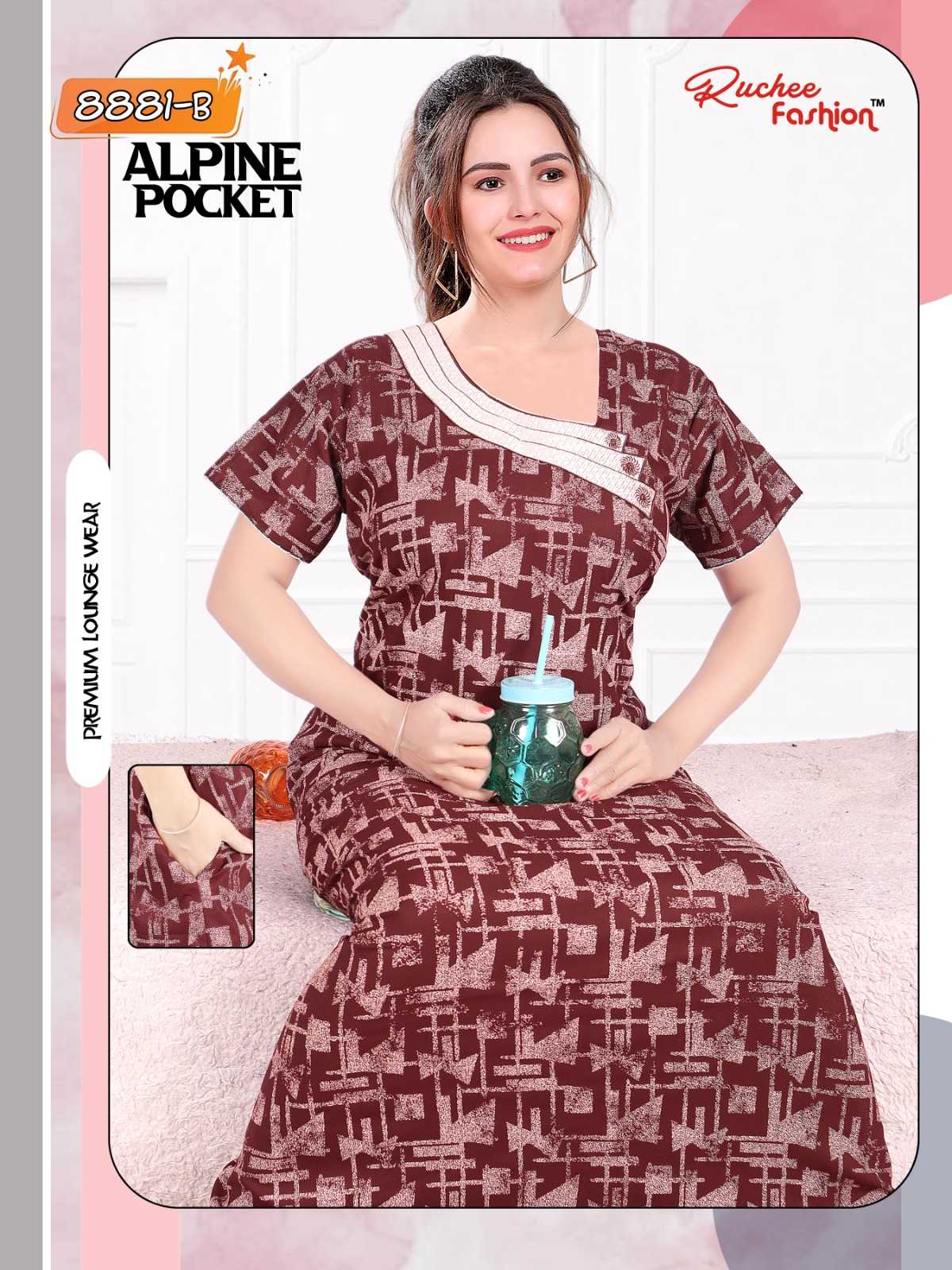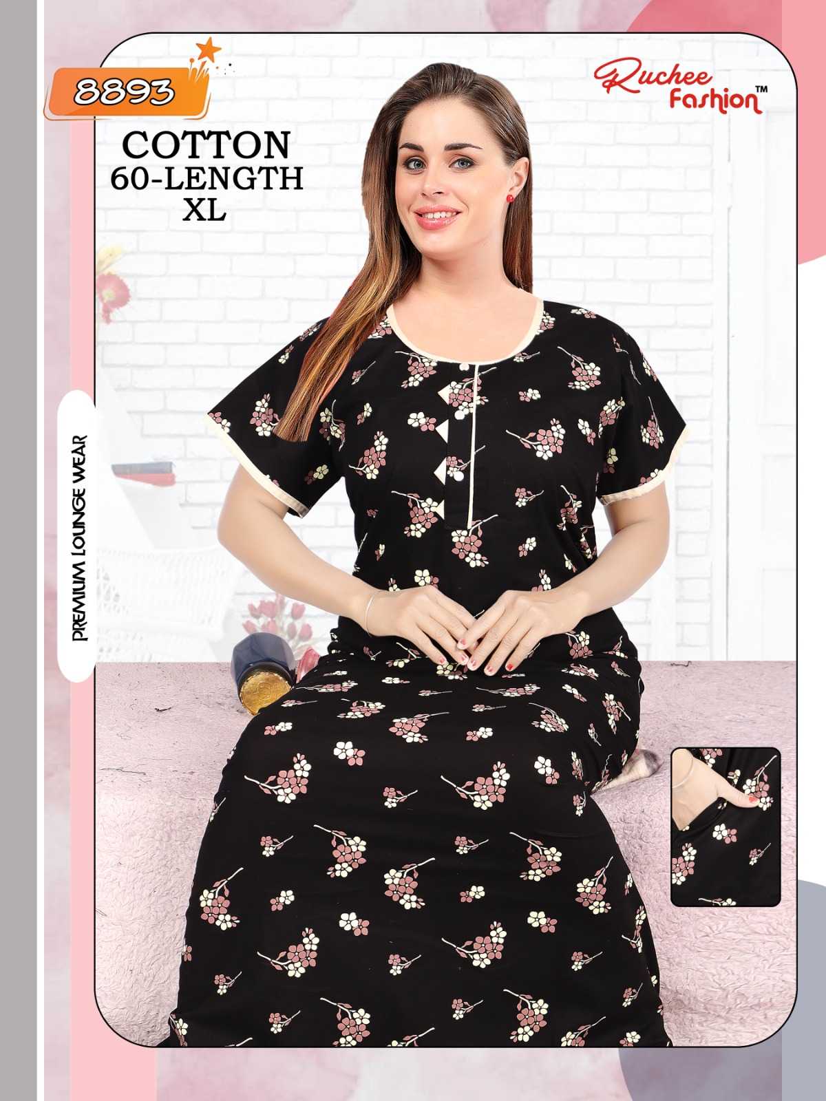 ruchee fashion cotton pocket pattern 8885-8888 comfy nighty collection