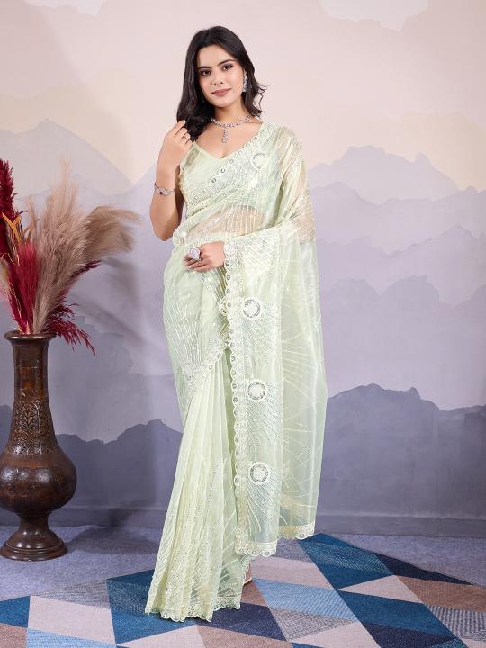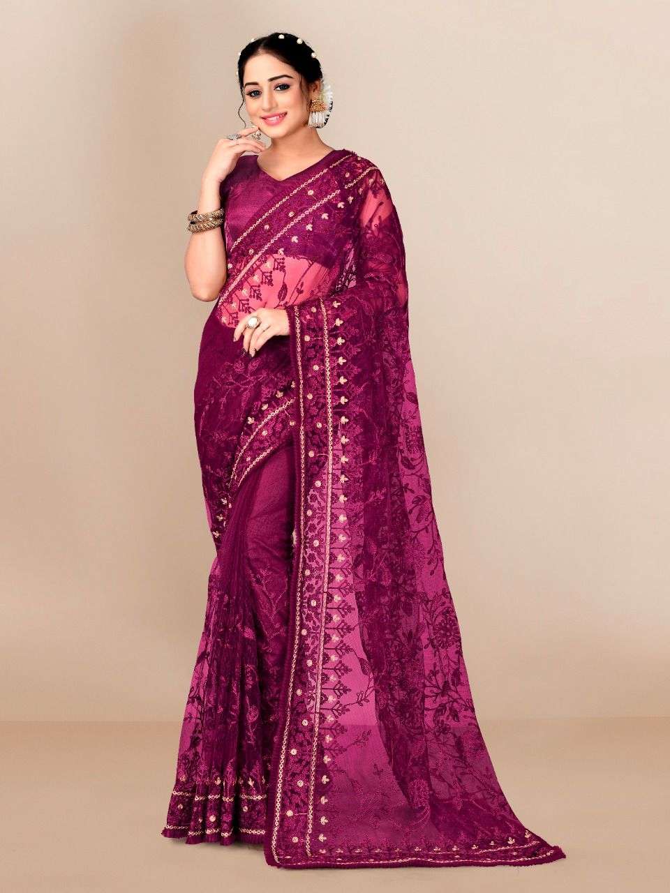 kc 2043 net beautiful sequins work saree with fancy blouse