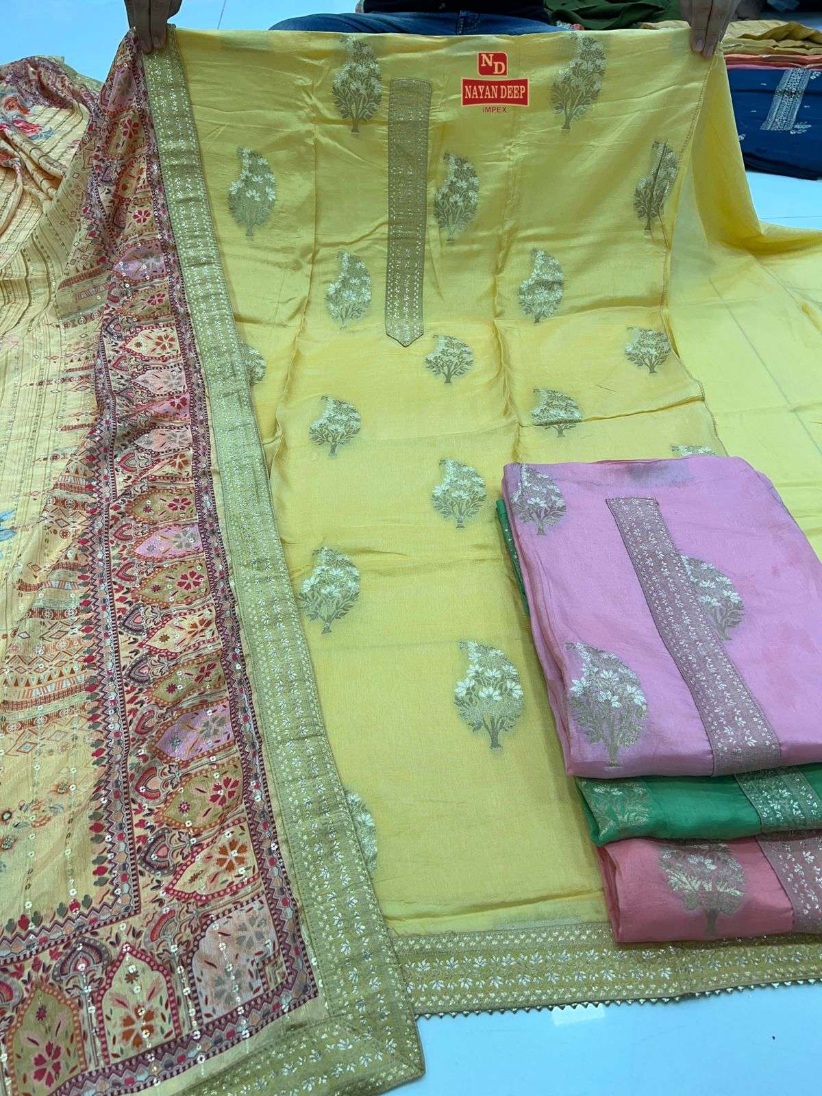 aanchal pure chanderi with organza dupatta unstitched suit color matching