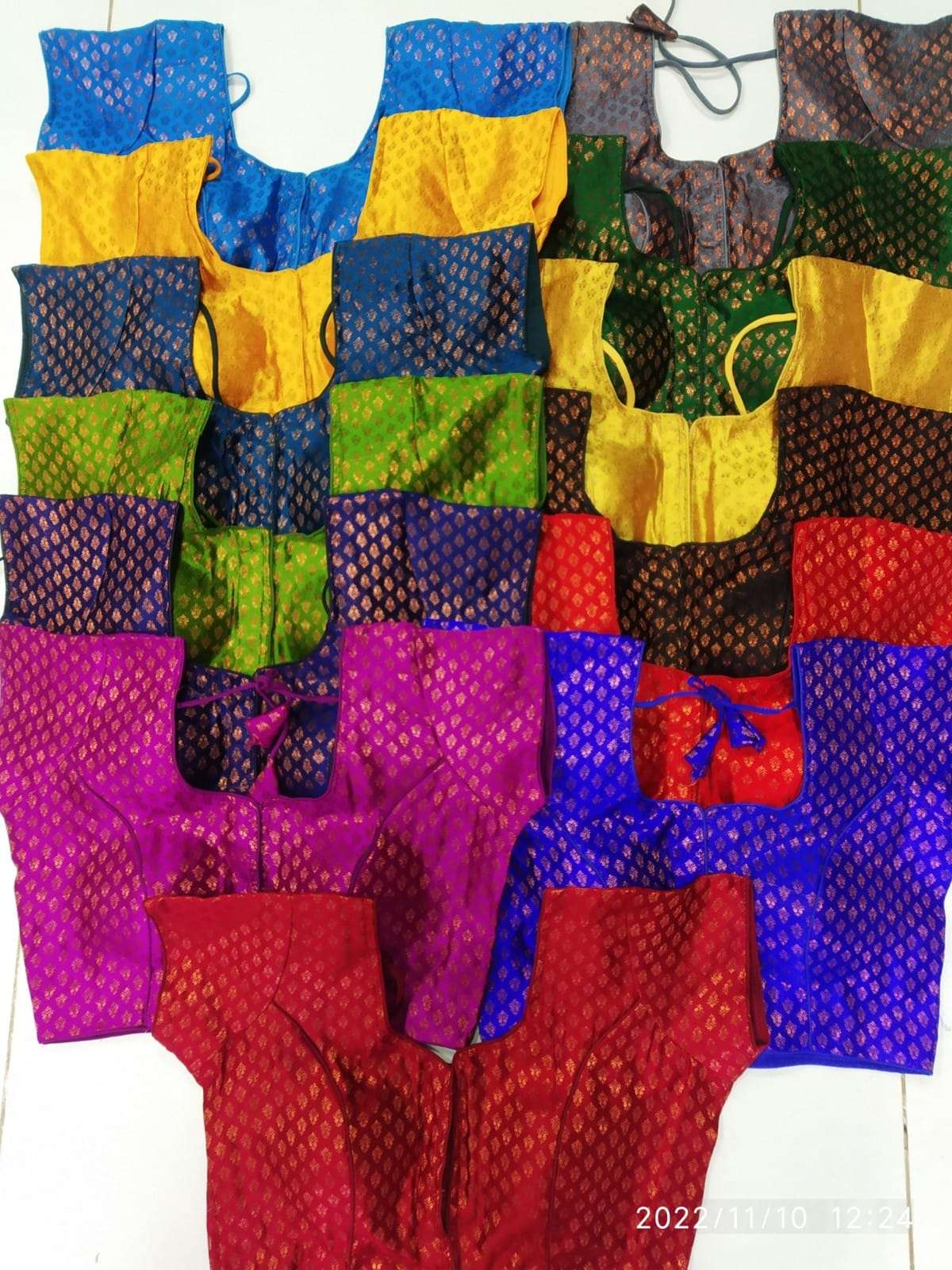 pr tulsi copper stylish look round neck jari banarasi jacquard readymade blouse