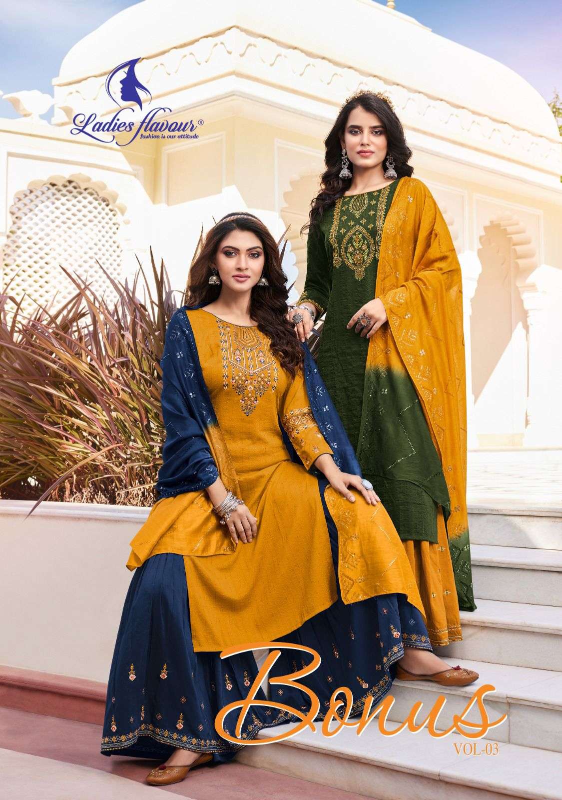 ladies flavour 3356 - 3370 mul chanderi readymade unique combo suits online