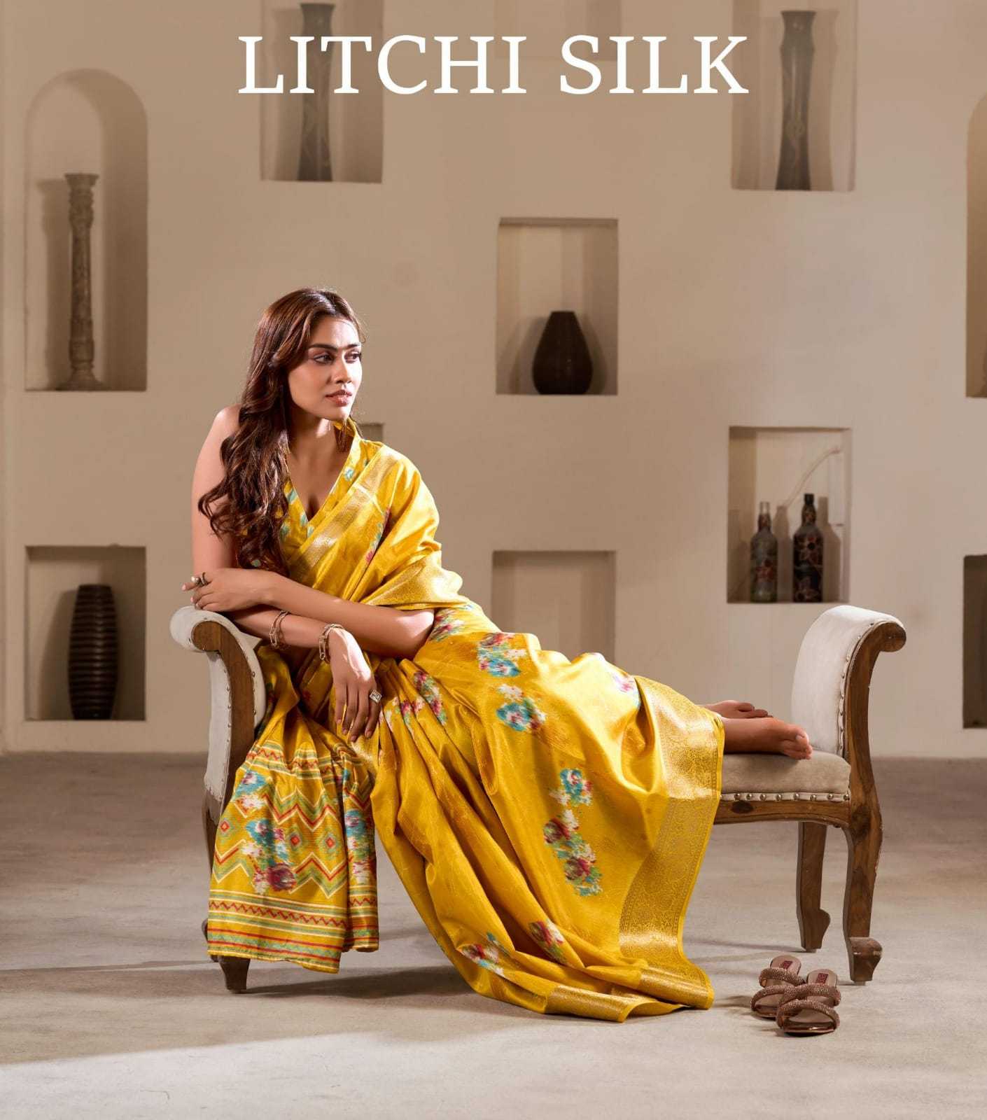 Cadbury by astita fancy designer lichi silk fabric saree wholesale with latkan