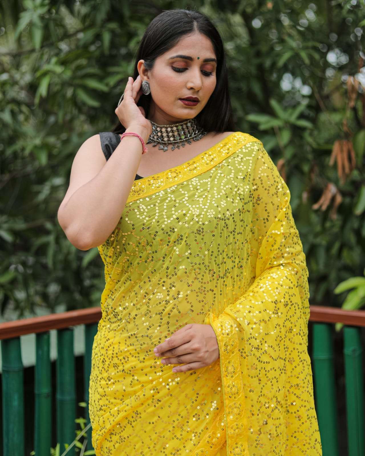 kalista fashion present lime light fancy sequence work georgette saree collection