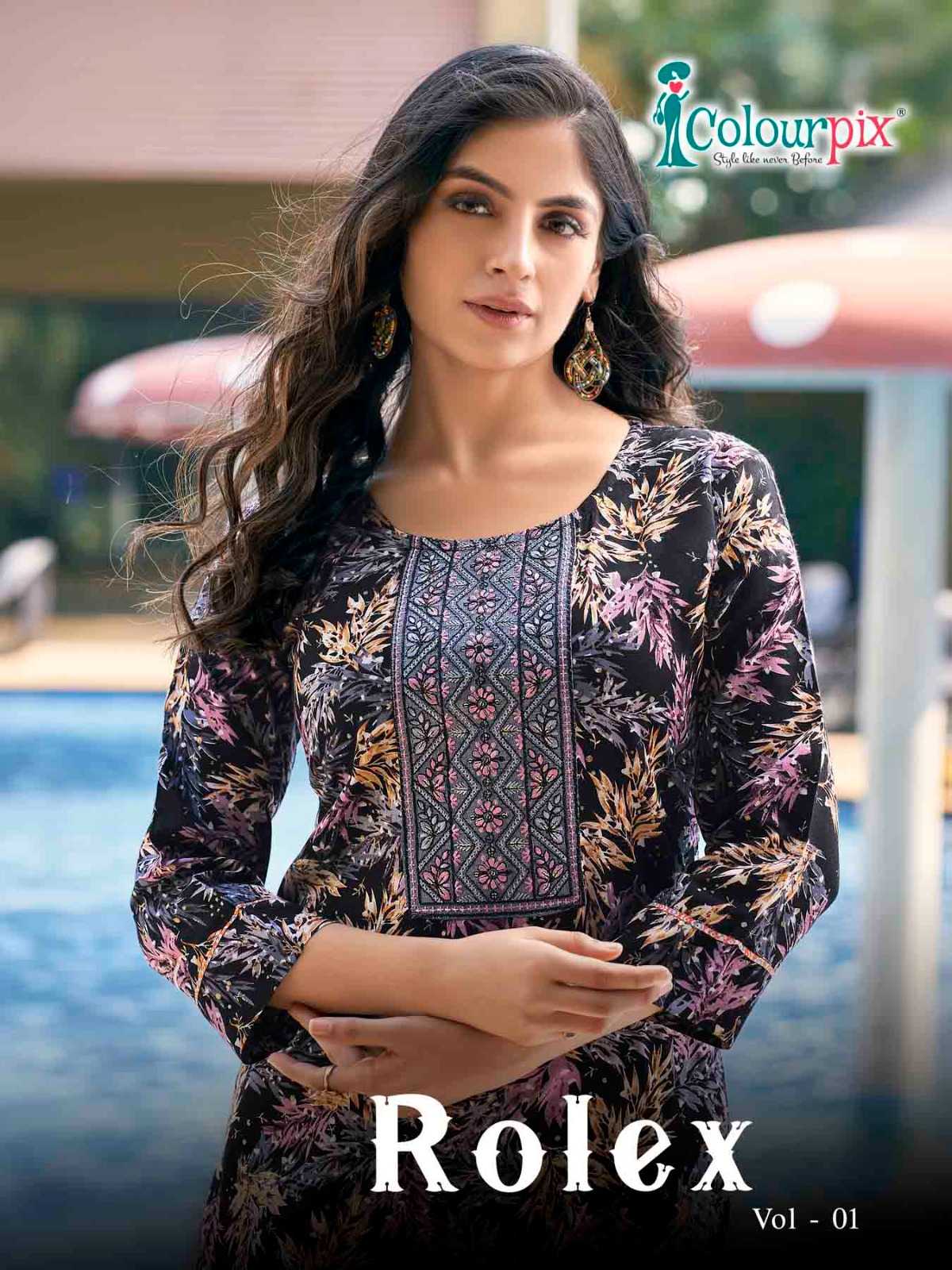 colourpix rolex vol 1 readymade rayon straight kurti catalog