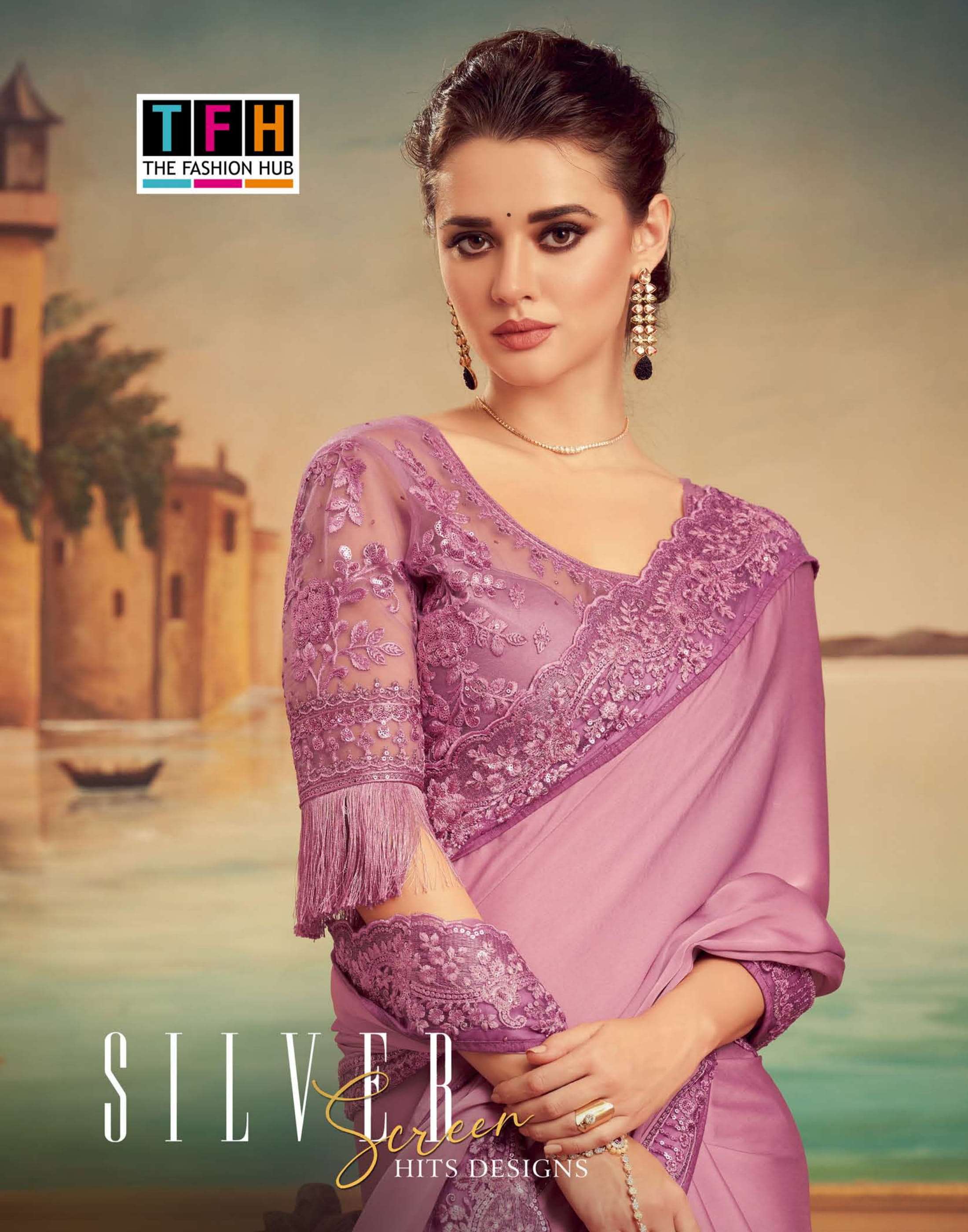 TERRY BY RANJNA SAREES SATIN GEROGETTE EMBROIDERY WORK HEAVY DIAMOND DESIGNER BORDER SAREES COLLECTION