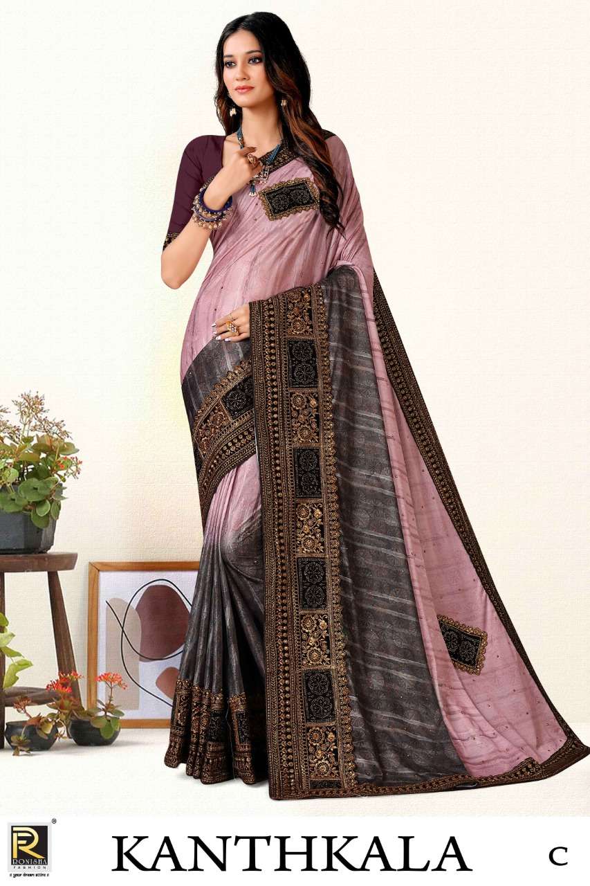 Ronisha ambuja embroidery worked designer saree collection