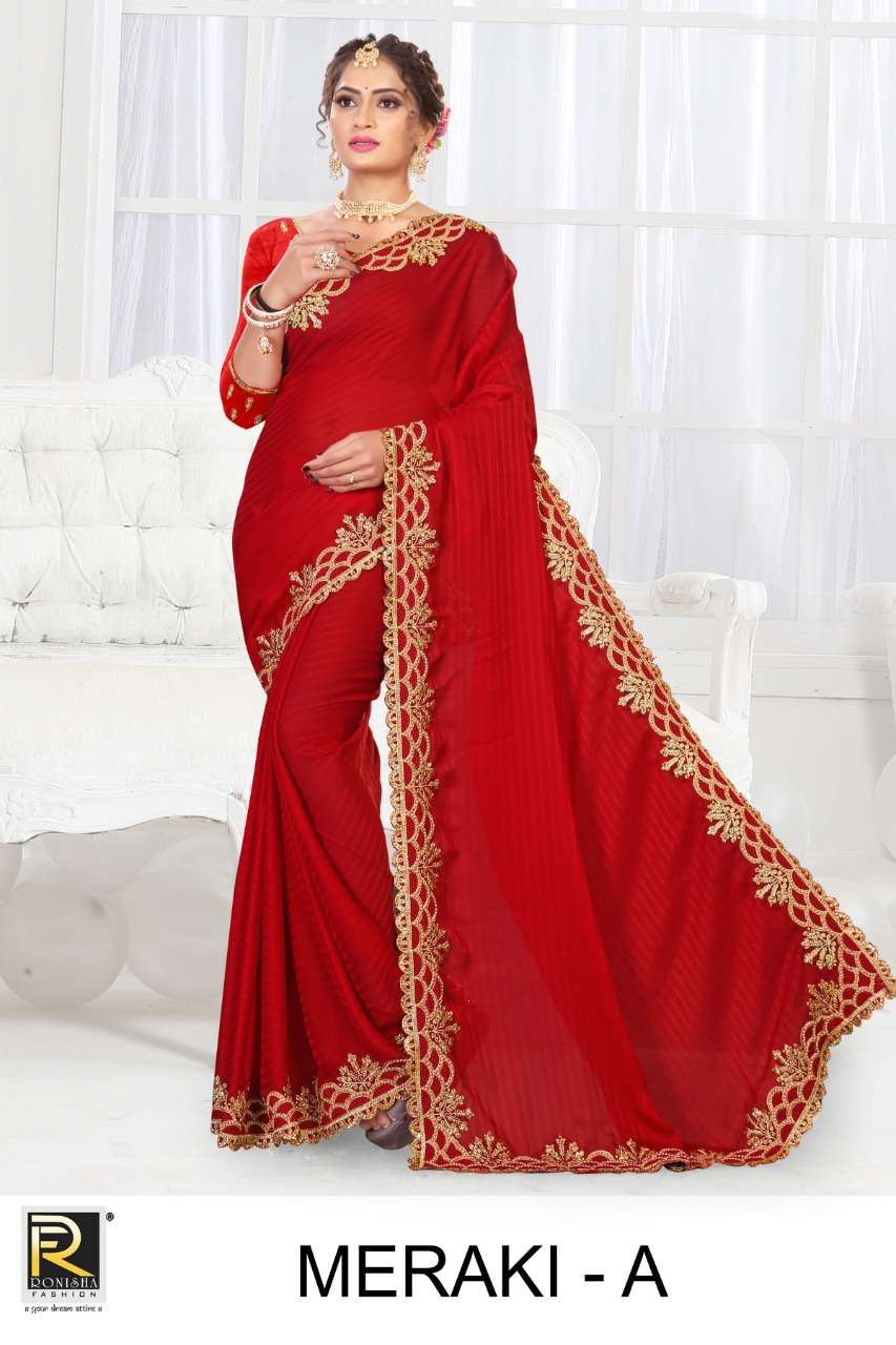 shubh shree elegance chiffon embrodery work with heavy blouse work saris