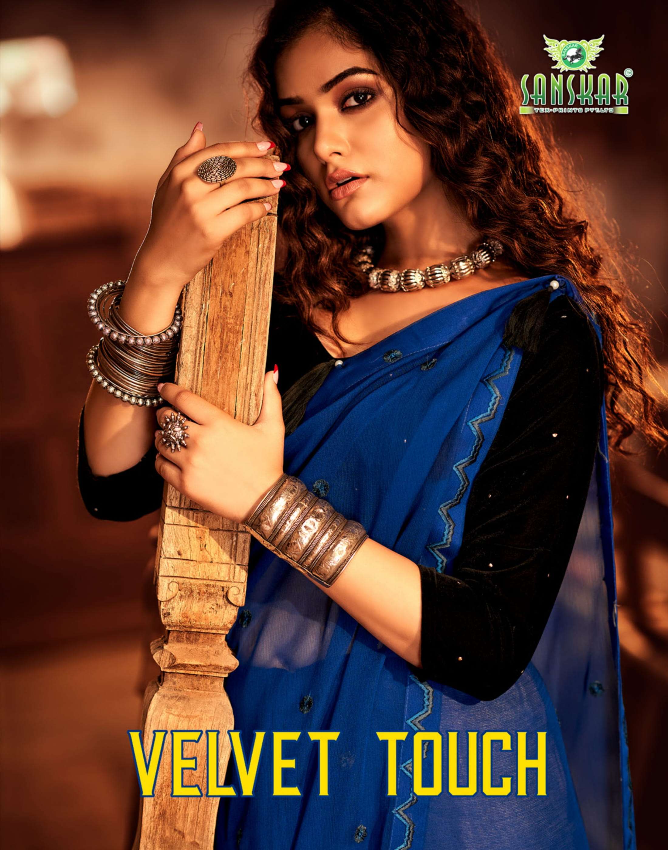sr aruna vol 2 3d velvet chiffon saree with sequence work blouse